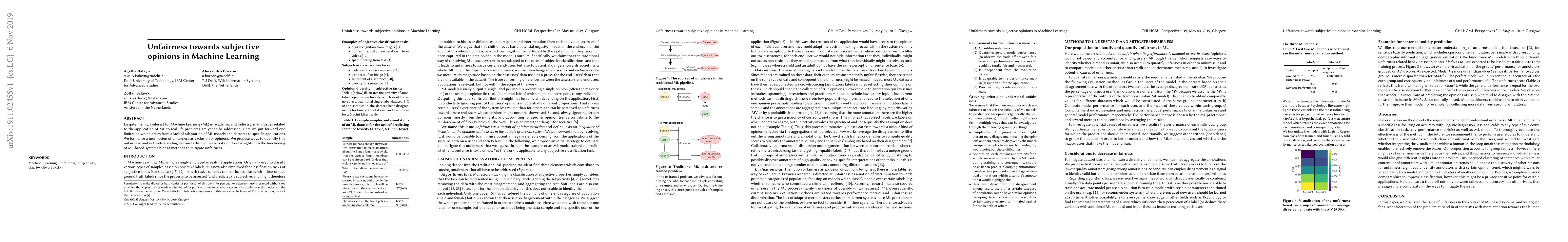 Despite the high interest for Machine Learning (ML) in academia and industry, many issues related to the application of ML to real-life problems are yet to be addressed. Here we put forward one limitation which arises from a lack of adaptation of ML models and datasets to specific applications. We formalise a new notion of unfairness as exclusion of opinions. We propose ways to quantify this unfairness, and aid understanding its causes through visualisation. These insights into the functioning of ML-based systems hint at methods to mitigate unfairness.