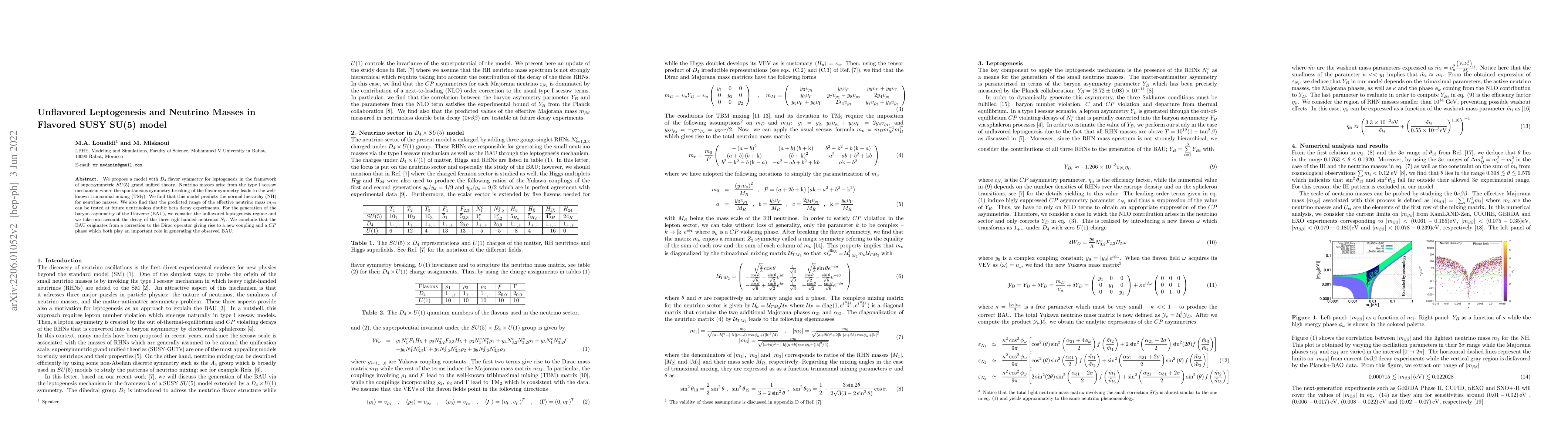 This paper proposes a supersymmetric $SU(5)$ model with $D_4$ flavor symmetry for leptogenesis, predicting normal hierarchy neutrino masses via the type I seesaw mechanism. It also explores unflavored leptogenesis through the decay of right-handed neutrinos, attributing the observed baryon asymmetry to new coupling and $CP$ phase effects.