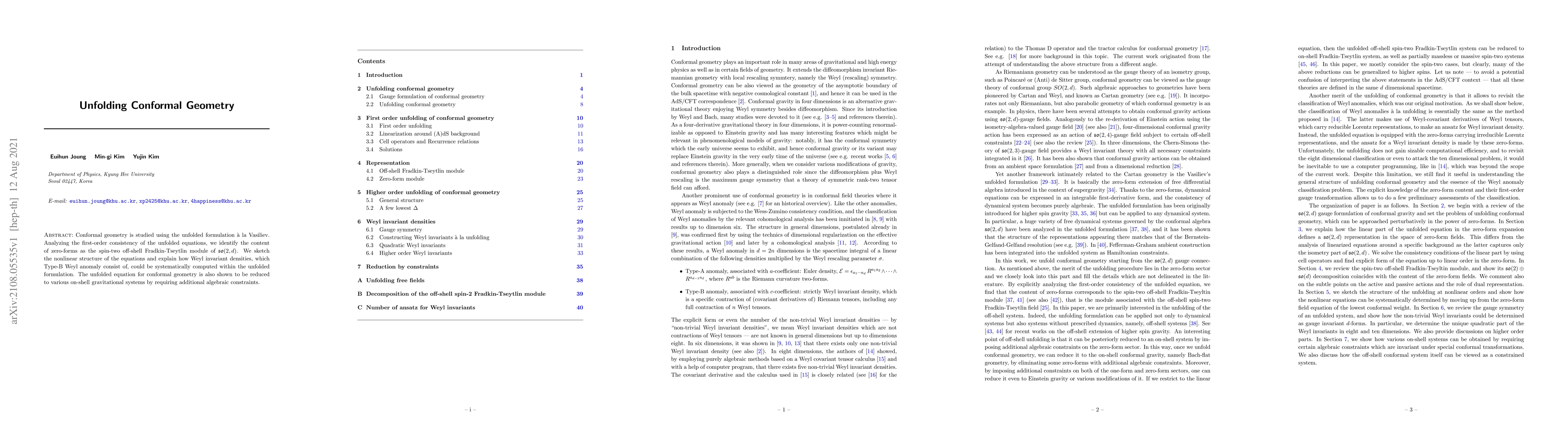 Researchers studied conformal geometry using an unfolded formulation and found that zero-forms' content matches a spin-two off-shell module of the SO(2,d) algebra. The equations can be reduced to various on-shell gravitational systems by adding specific constraints.