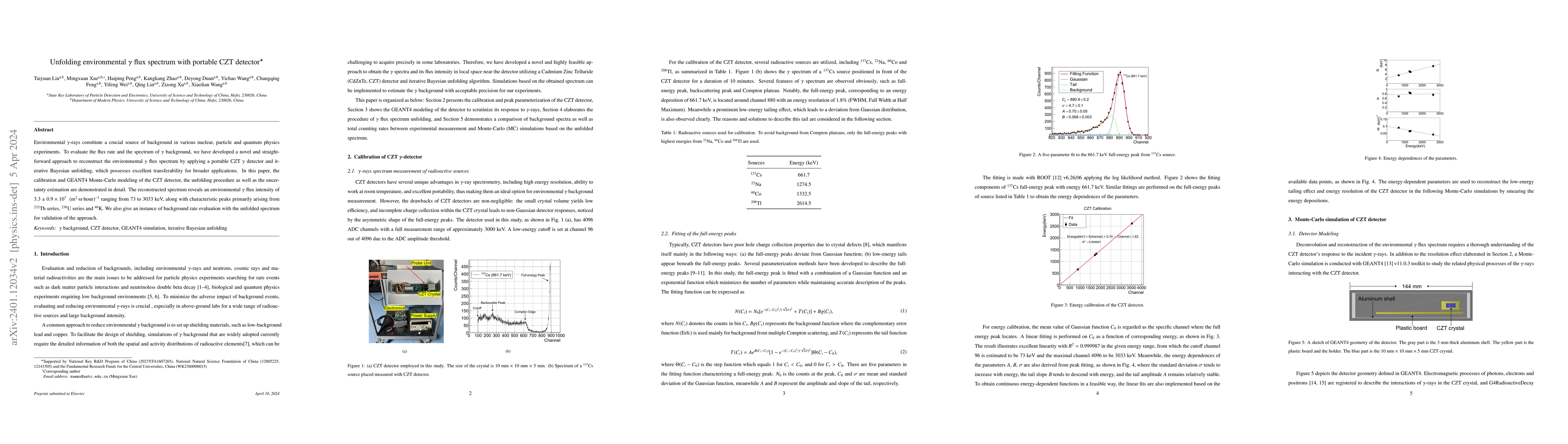 Environmental $\gamma$-rays constitute a crucial source of background in various nuclear, particle and quantum physics experiments. To evaluate the flux rate and the spectrum of $\gamma$ background, we have developed a novel and straightforward approach to reconstruct the environmental $\gamma$ flux spectrum by applying a portable CZT $\gamma$ detector and iterative Bayesian unfolding, which possesses excellent transferability for broader applications. In this paper, the calibration and GEANT4 Monte-Carlo modeling of the CZT detector, the unfolding procedure as well as the uncertainty estimation are demonstrated in detail. The reconstructed spectrum reveals an environmental $\gamma$ flux intensity of $3.3\pm 0.9\times 10^{7}$~ (m$^2\cdot$sr$\cdot$hour)$^{-1}$ ranging from 73 to 3033~keV, along with characteristic peaks primarily arising from $^{232}$Th series, $^{238}$U series and $^{40}$K. We also give an instance of background rate evaluation with the unfolded spectrum for validation of the approach.