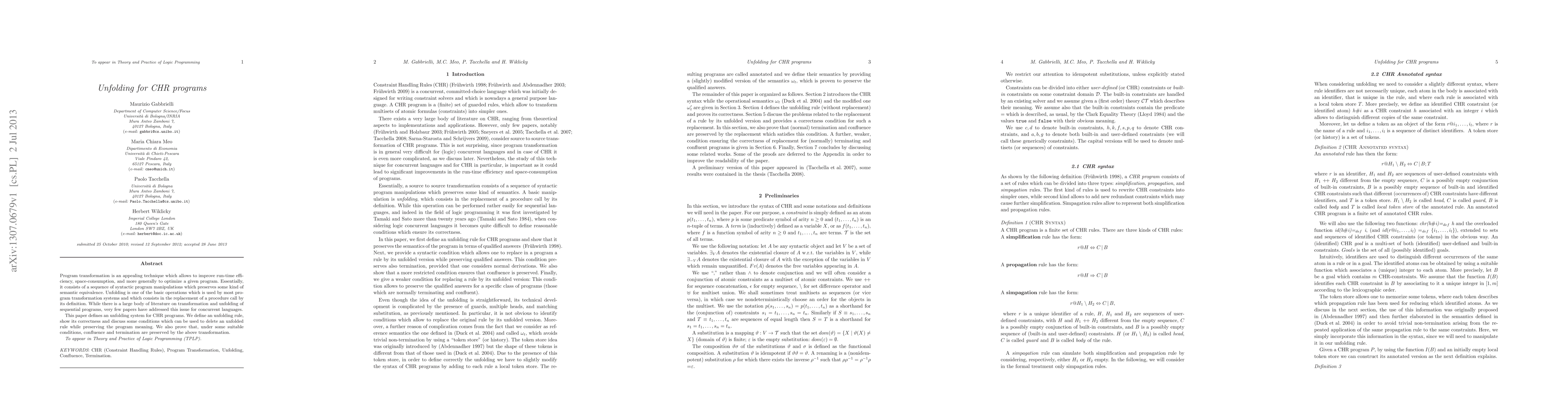 This paper introduces an unfolding system for Concurrent Hypergraph Rewriting (CHR) programs, defining an unfolding rule and proving its correctness, confluence, and termination under certain conditions. It aims to optimize run-time efficiency and space-consumption for concurrent programs.