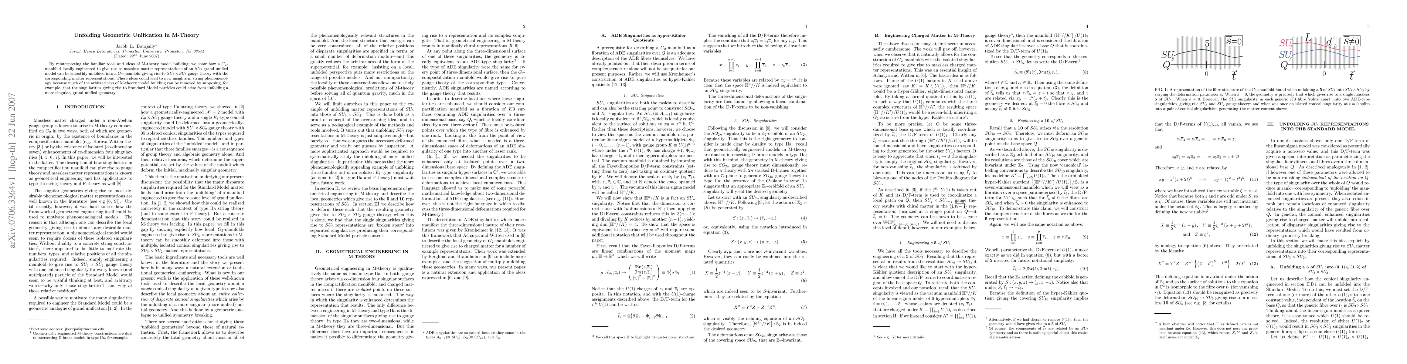 By reinterpreting the familiar tools and ideas of M-theory model building, we show how a G2-manifold locally engineered to give rise to massless matter representations of an SU(5) grand unified model can be smoothly unfolded into a G2-manifold giving rise to SU(3)xSU(2) gauge theory with the corresponding matter representations. These ideas could lead to new insights in string phenomenology because much of the arbitrariness of M-theory model building can be removed by supposing, for example, that the singularities giving rise to Standard Model particles could arise from unfolding a more singular, grand unified geometry.