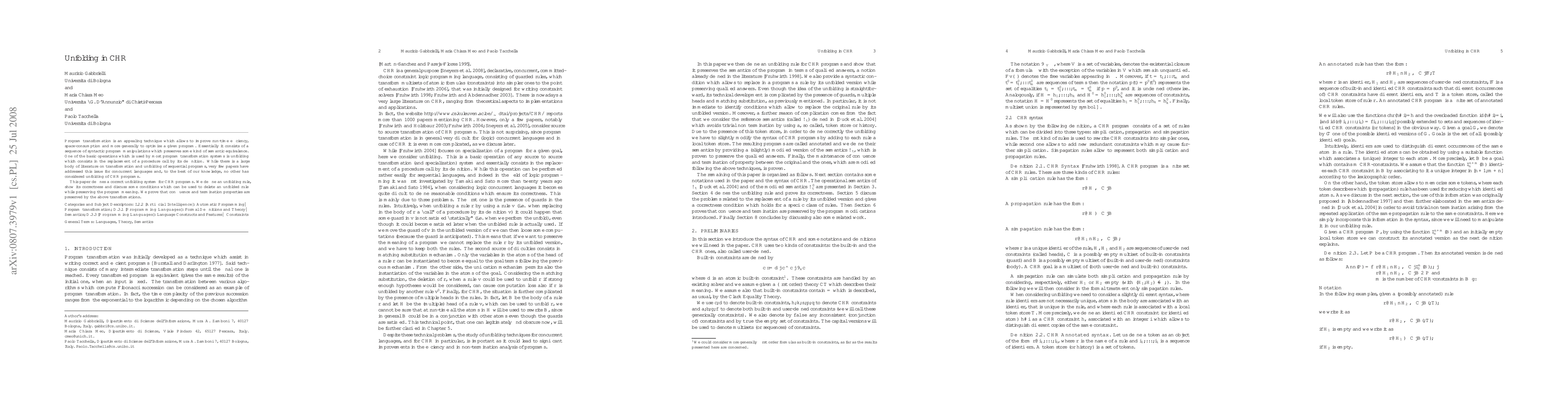 This paper introduces a correct unfolding system for Concurrent Constraint Programming (CHR) programs, defining an unfolding rule and demonstrating its correctness. It also discusses conditions for deleting unfolded rules while maintaining program semantics, proving that the transformations preserve confluence and termination properties.