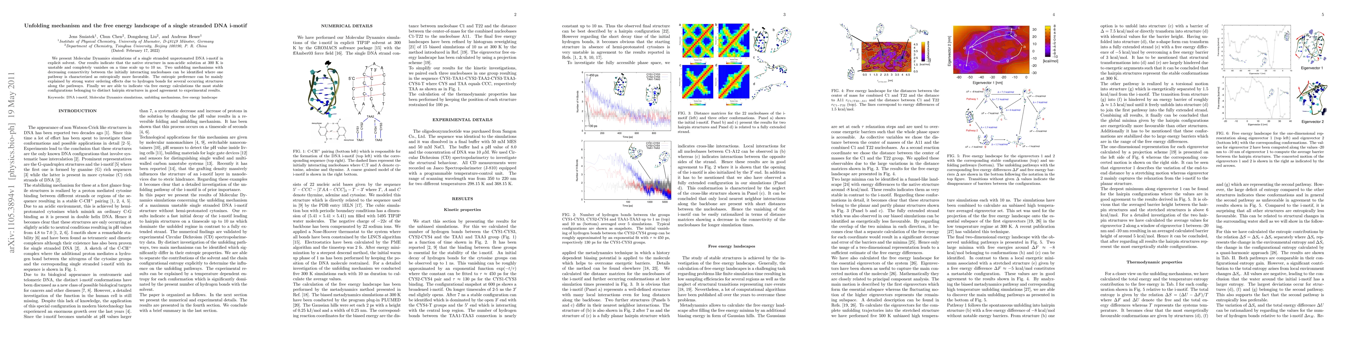 Researchers used molecular dynamics simulations to study the unfolding mechanism of a single-stranded DNA i-motif, finding two entropically favorable pathways with strong water ordering effects. The most stable configurations matched experimental results and provided insight into the structure's behavior in non-acidic solution.