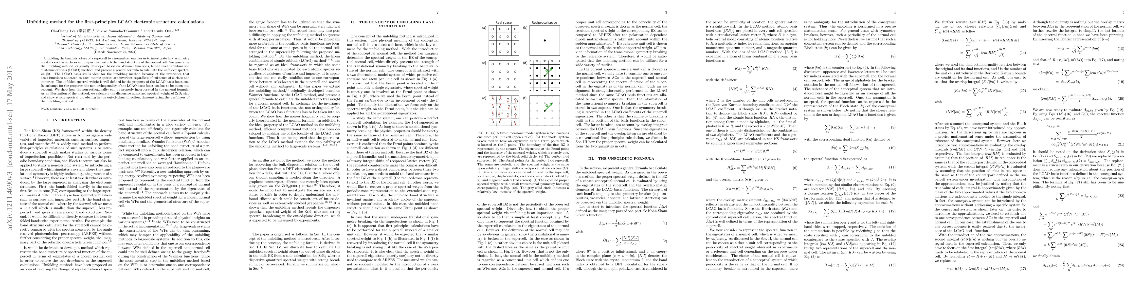 This paper generalizes the unfolding method for band structure analysis from Wannier functions to the LCAO method, demonstrating its utility in investigating symmetry breakers like surfaces and impurities. The method accounts for the non-orthogonality of LCAO basis functions and is illustrated with a calculation on ZrB2, showing significant spectral broadening.