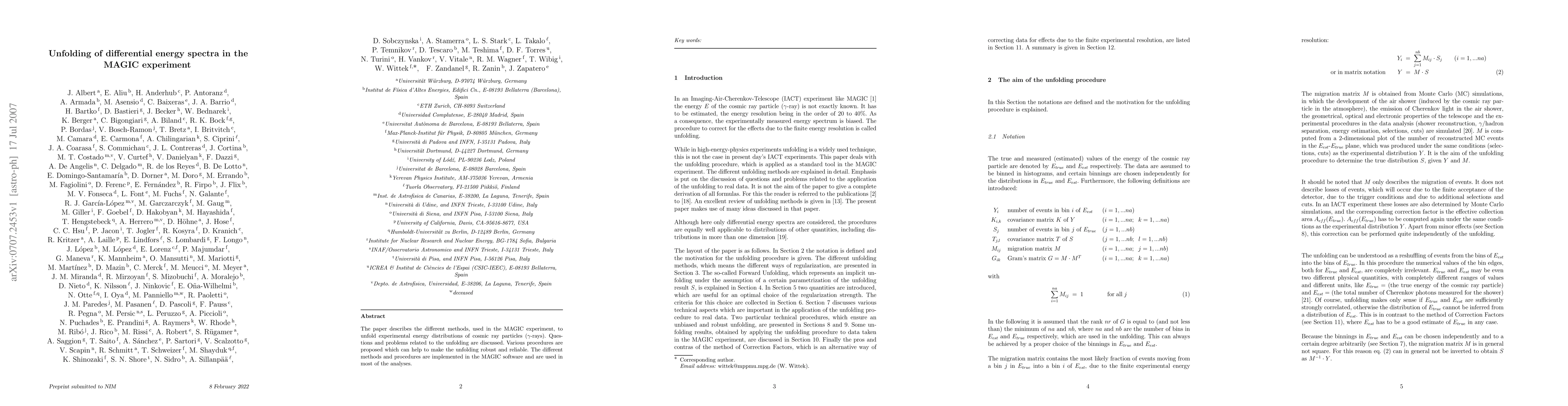 The paper describes the different methods, used in the MAGIC experiment, to unfold experimental energy distributions of cosmic ray particles (gamma-rays). Questions and problems related to the unfolding are discussed. Various procedures are proposed which can help to make the unfolding robust and reliable. The different methods and procedures are implemented in the MAGIC software and are used in most of the analyses.