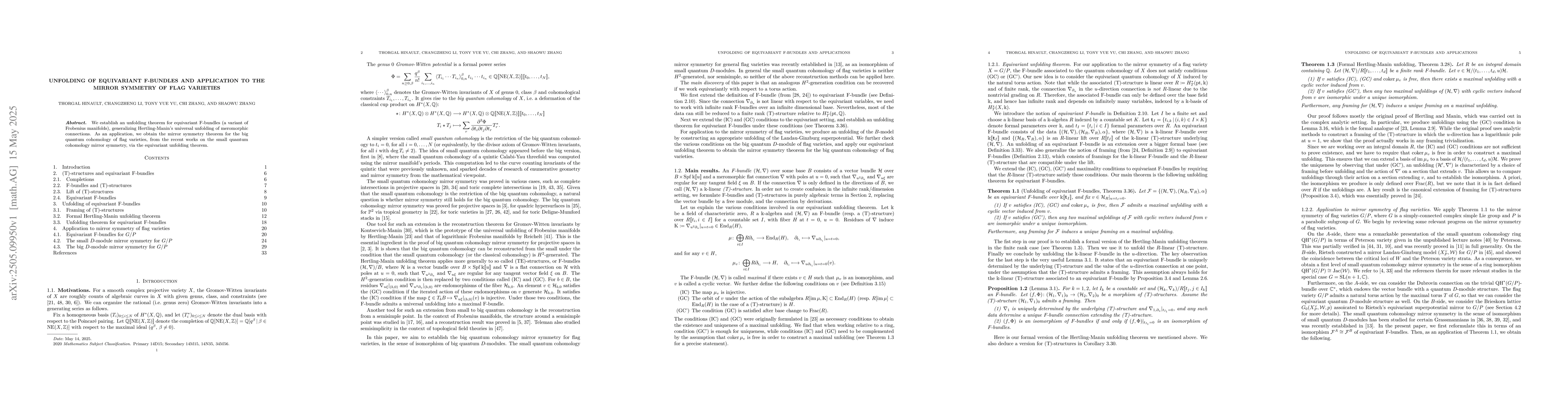 Researchers developed an unfolding theorem for equivariant F-bundles, enabling the mirror symmetry of flag varieties through a generalization of a previous theorem, with implications for quantum cohomology.