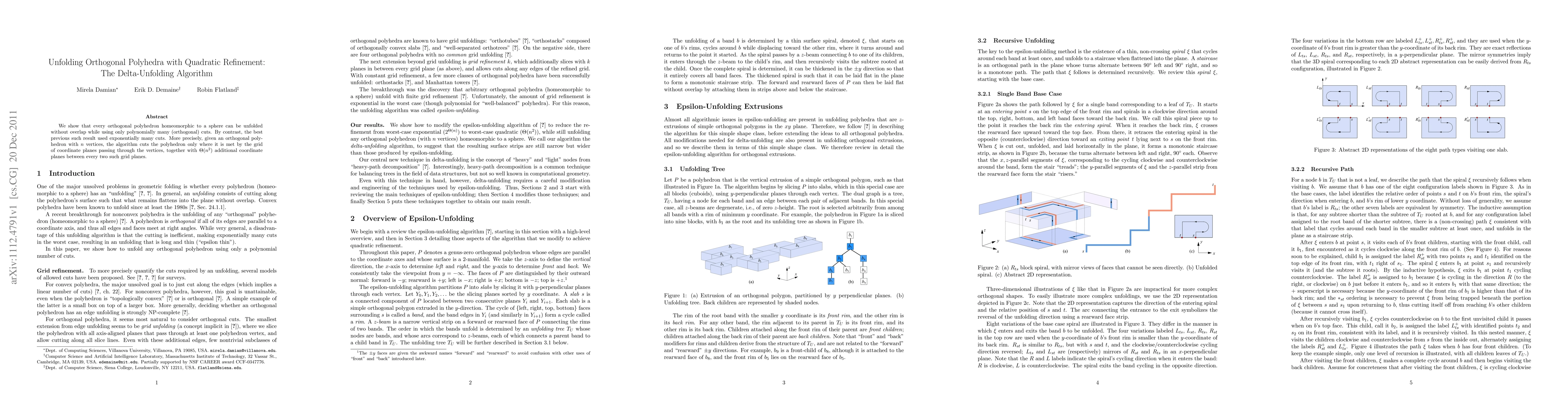 Summary: The Delta-Unfolding Algorithm efficiently unfolds orthogonal polyhedra homeomorphic to a sphere using polynomially many cuts, significantly improving upon previous methods that required exponentially many cuts. This is achieved by strategically cutting along coordinate planes passing through vertices and additional planes between them.