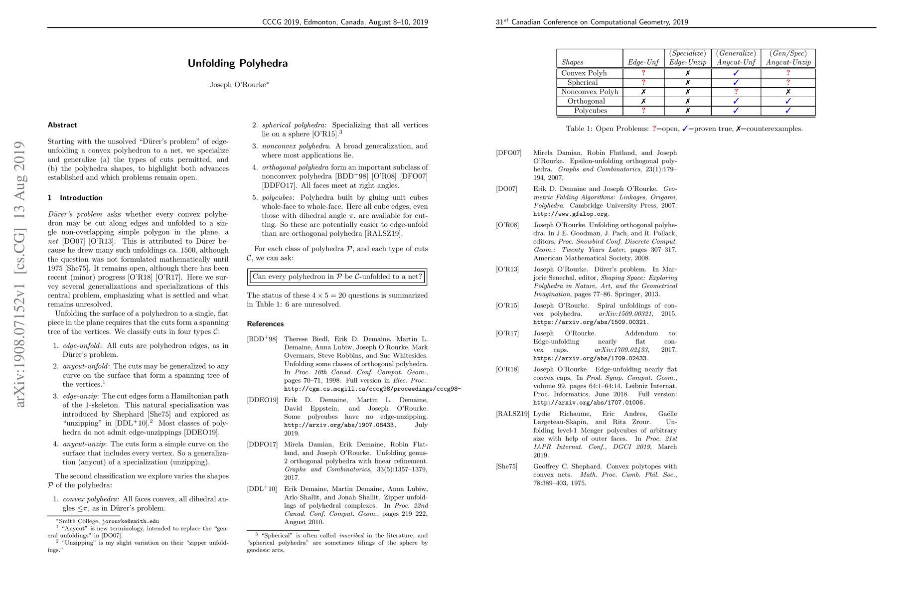 Starting with the unsolved "D\"urer's problem" of edge-unfolding a convex polyhedron to a net, we specialize and generalize (a) the types of cuts permitted, and (b) the polyhedra shapes, to highlight both advances established and which problems remain open.
