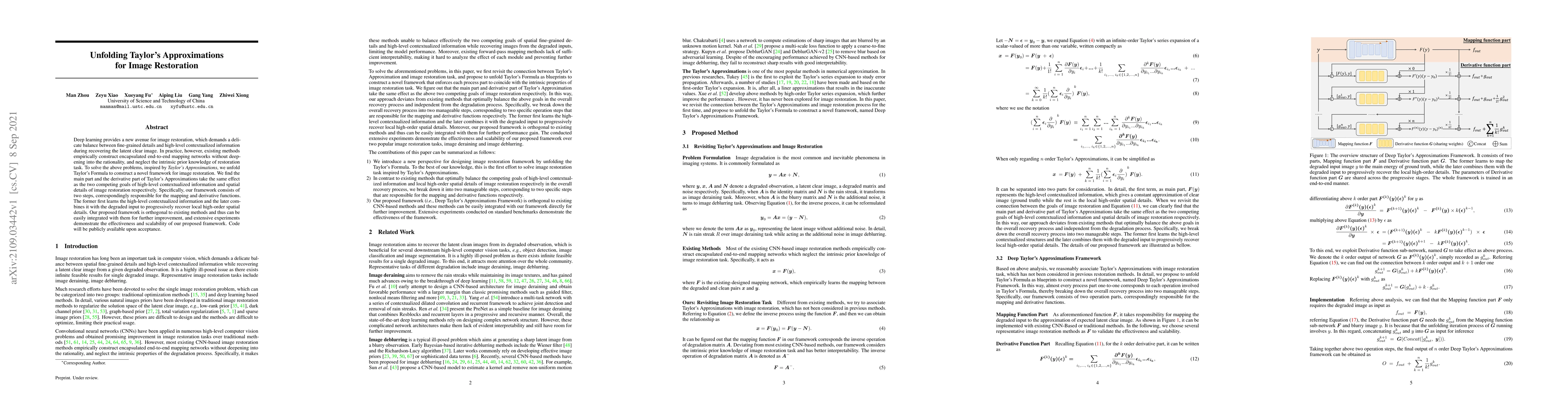 This paper proposes a novel image restoration framework inspired by Taylor's Approximations, which balances high-level contextual information and fine-grained details. The framework consists of two steps: one for learning contextual information and another for recovering spatial details, demonstrating improved performance and scalability.