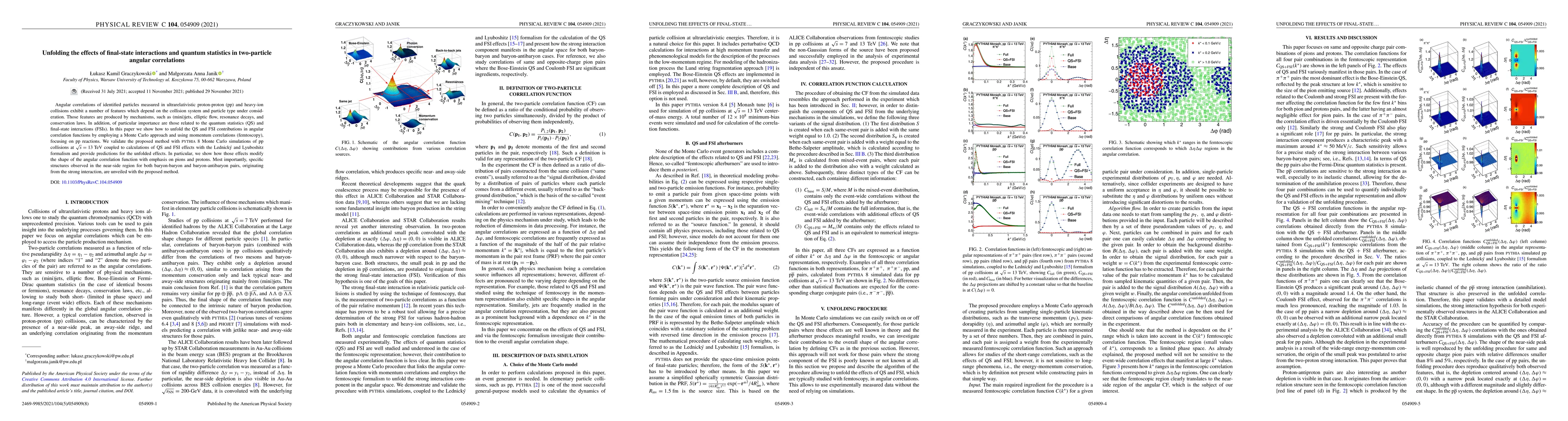 This paper develops a Monte Carlo approach to disentangle quantum statistics and final-state interaction effects in two-particle angular correlations from ultrarelativistic proton-proton collisions, validated with PYTHIA 8 simulations, and reveals specific structures in the near-side region due to strong interactions.