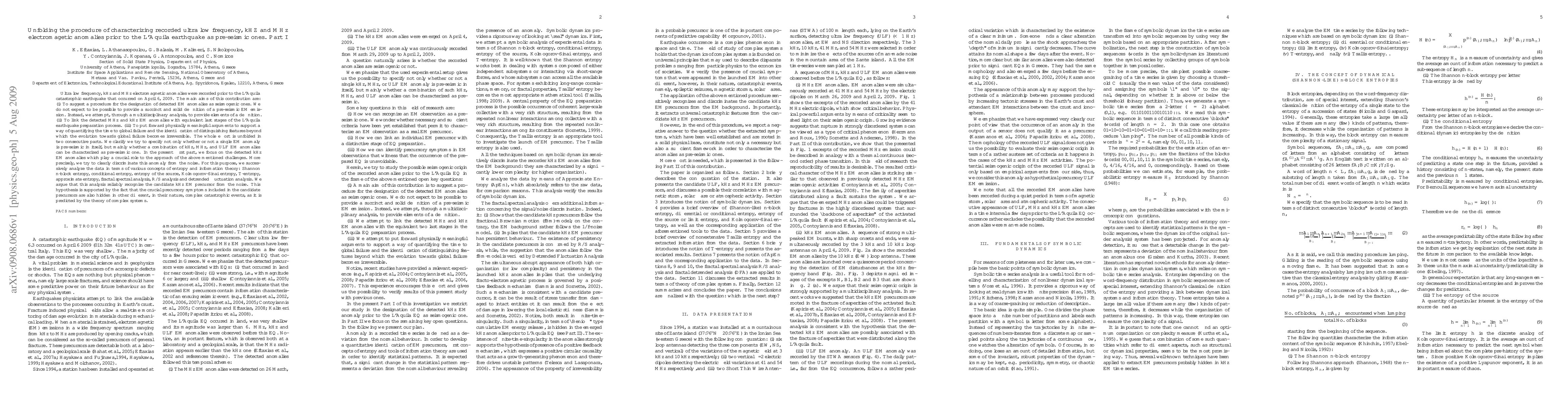 This paper proposes a procedure to characterize electromagnetic anomalies recorded before the L'Aquila earthquake as pre-seismic, aiming to identify combinations of ultra low frequency, kHz, and MHz anomalies that indicate impending seismic activity. It also seeks to link these anomalies with the final stages of earthquake preparation and to quantify the time to irreversible failure.