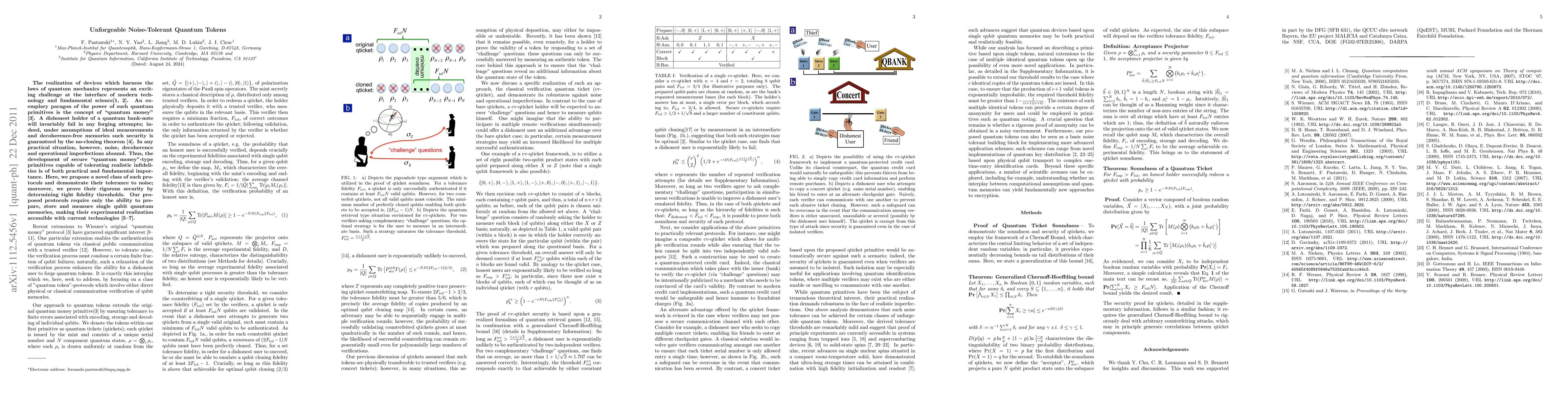 This paper proposes a novel class of quantum tokens that are secure against forgery and can tolerate realistic noise and decoherence, leveraging current quantum technologies. The authors rigorously prove the security of these protocols by determining tight fidelity thresholds.
