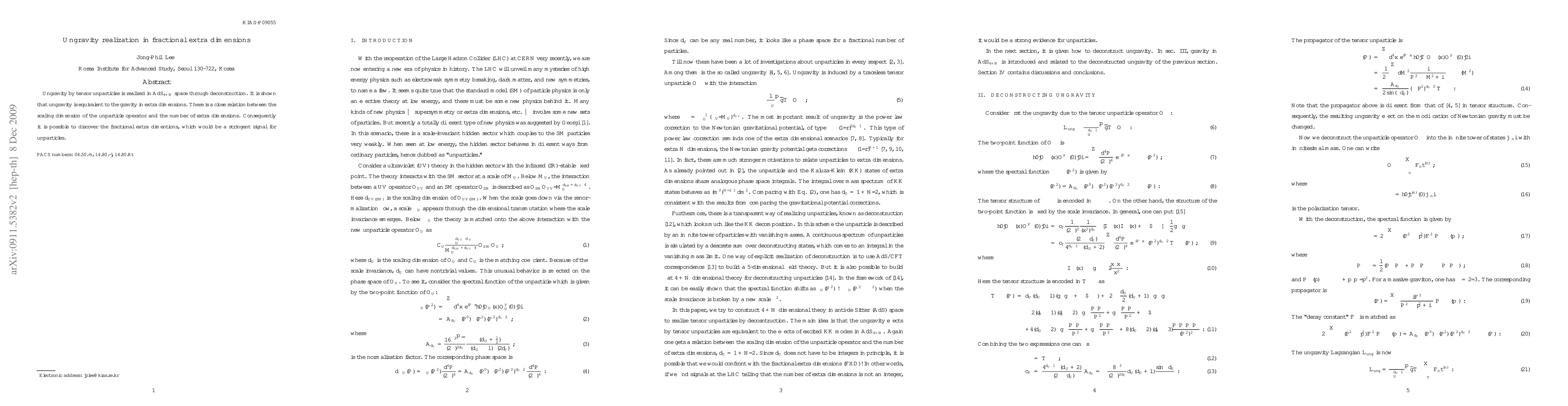 Ungravity by tensor unparticles is realized in AdS(4+N) space through deconstruction. It is shown that ungravity is equivalent to the gravity in extra dimensions. There is a close relation between the scaling dimension of the unparticle operator and the number of extra dimensions. Consequently it is possible to discover the fractional extra dimentions, which would be a stringent signal for unparticles.