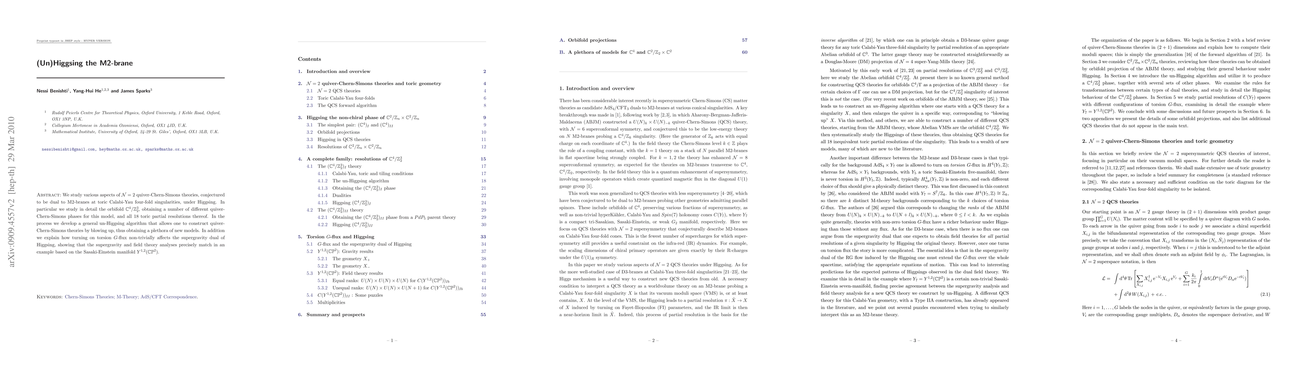 We study various aspects of N=2 quiver-Chern-Simons theories, conjectured to be dual to M2-branes at toric Calabi-Yau four-fold singularities, under Higgsing. In particular we study in detail the orbifold C^4/Z_2^3, obtaining a number of different quiver-Chern-Simons phases for this model, and all 18 toric partial resolutions thereof. In the process we develop a general un-Higgsing algorithm that allows one to construct quiver-Chern-Simons theories by blowing up, thus obtaining a plethora of new models. In addition we explain how turning on torsion G-flux non-trivially affects the supergravity dual of Higgsing, showing that the supergravity and field theory analyses precisely match in an example based on the Sasaki-Einstein manifold Y^(1,2)(CP^2).
