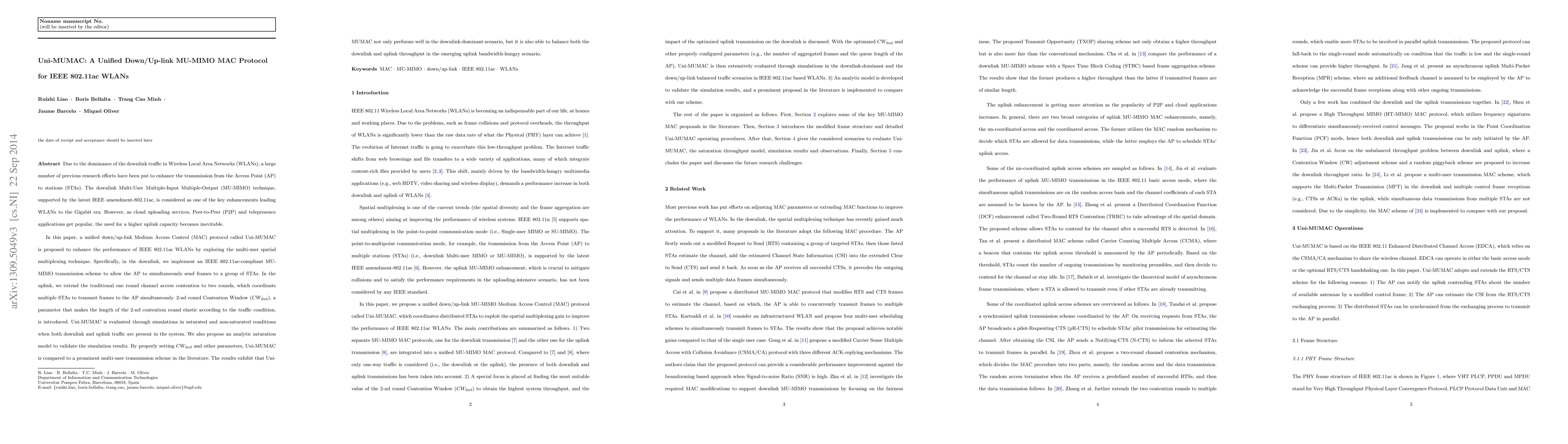 Uni-MUMAC proposes a unified down/up-link Medium Access Control protocol for IEEE 802.11ac WLANs, enhancing performance through simultaneous multi-user transmissions in both directions. Simulation results show it balances throughput efficiently in both downlink-dominant and uplink-intensive scenarios.