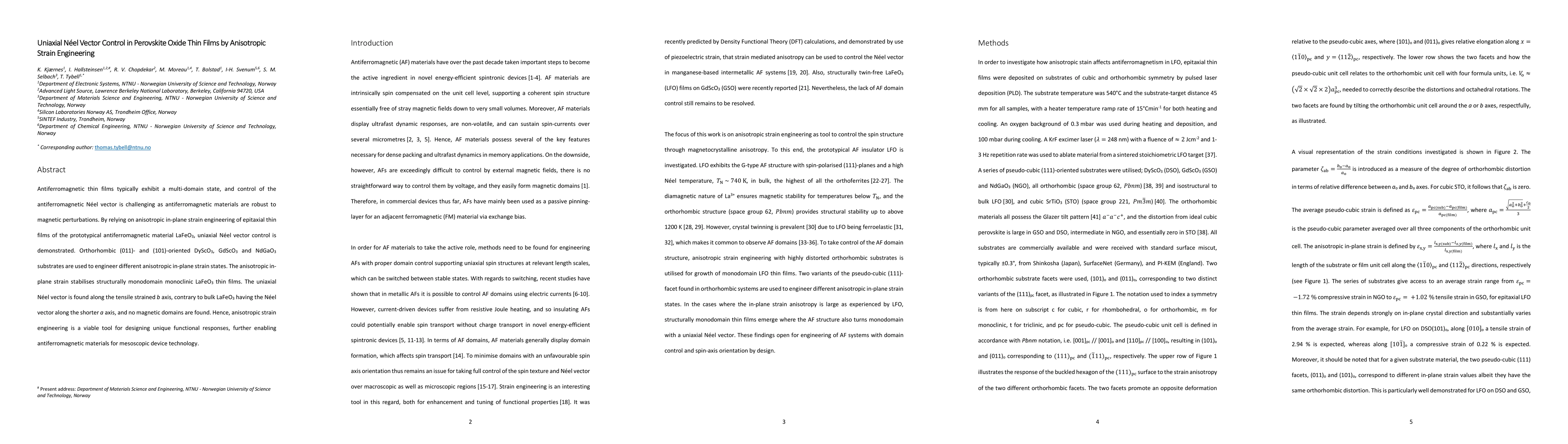 This paper demonstrates uniaxial N\'eel vector control in LaFeO3 thin films using anisotropic in-plane strain engineering via epitaxial growth on orthorhombic substrates. The study shows that tensile strain along the b axis stabilizes monodomain structures, enabling unique magnetic functionalities for antiferromagnetic materials in device technology.