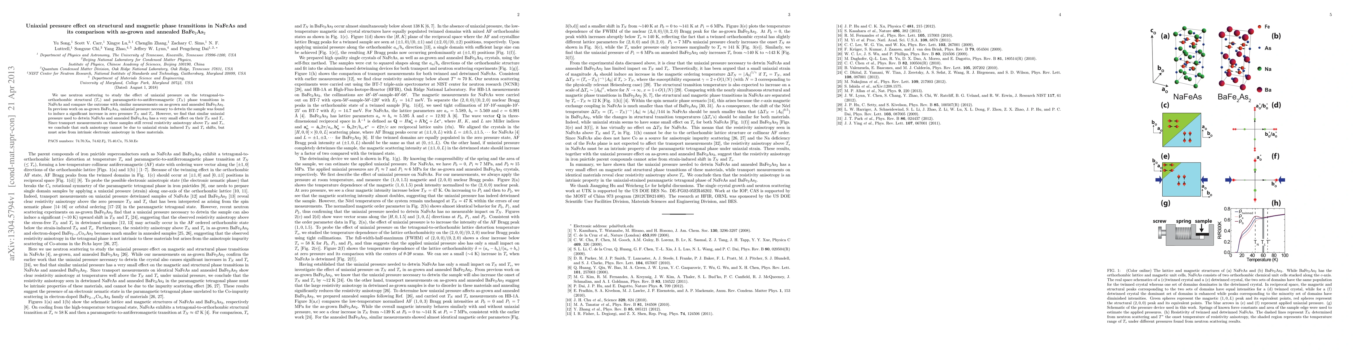 This study uses neutron scattering to investigate the impact of uniaxial pressure on the structural and magnetic phase transitions in NaFeAs and compares it to as-grown and annealed BaFe$_2$As$_2$. Despite previous findings in BaFe$_2$As$_2$, uniaxial pressure has minimal effects on the phase transitions in NaFeAs and annealed BaFe$_2$As$_2$, suggesting intrinsic electronic anisotropy rather than strain-induced shifts is responsible for resistivity anisotropy.