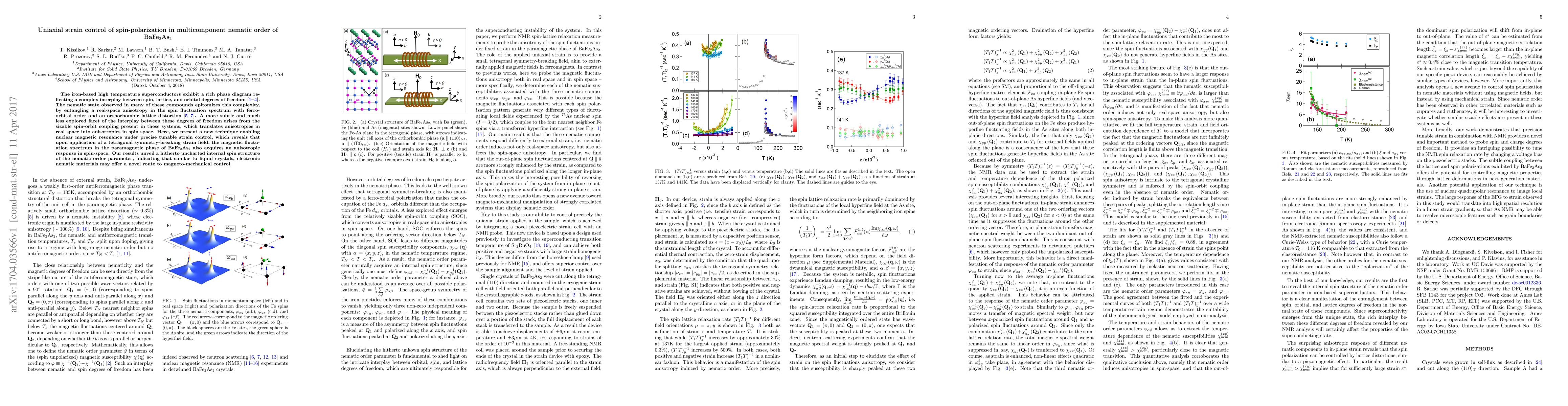The iron-based high temperature superconductors exhibit a rich phase diagram reflecting a complex interplay between spin, lattice, and orbital degrees of freedom [1-4]. The nematic state observed in many of these compounds epitomizes this complexity, by entangling a real-space anisotropy in the spin fluctuation spectrum with ferro-orbital order and an orthorhombic lattice distortion [5-7]. A more subtle and much less explored facet of the interplay between these degrees of freedom arises from the sizable spin-orbit coupling present in these systems, which translates anisotropies in real space into anisotropies in spin space. Here, we present a new technique enabling nuclear magnetic resonance under precise tunable strain control, which reveals that upon application of a tetragonal symmetry-breaking strain field, the magnetic fluctuation spectrum in the paramagnetic phase of BaFe$_{2}$As$_{2}$ also acquires an anisotropic response in spin-space. Our results unveil a hitherto uncharted internal spin structure of the nematic order parameter, indicating that similar to liquid crystals, electronic nematic materials may offer a novel route to magneto-mechanical control.