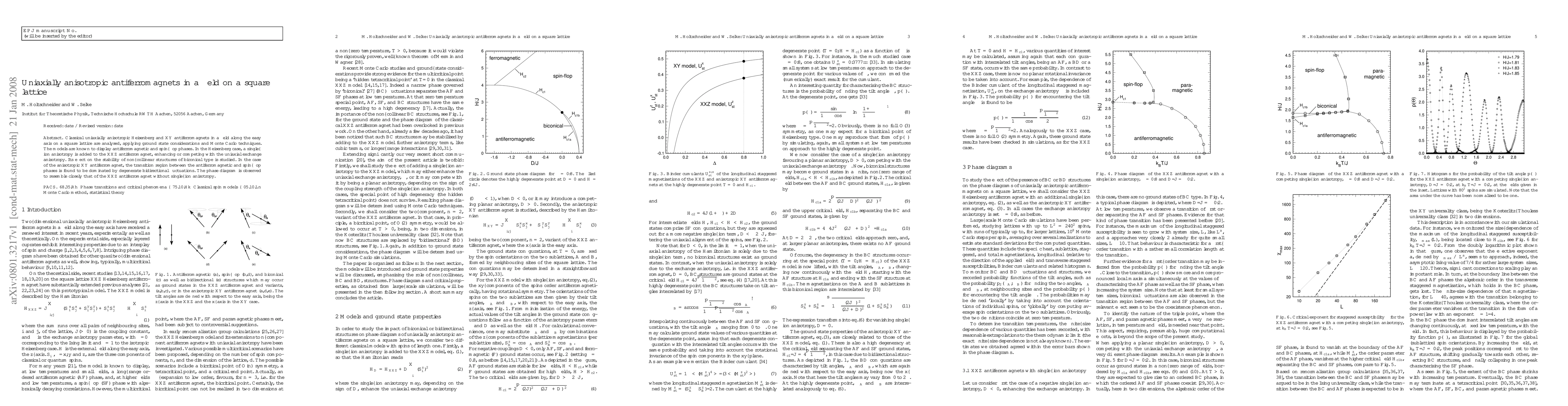 This paper analyzes classical uniaxially anisotropic Heisenberg and XY antiferromagnets on a square lattice under a field along the easy axis, using ground state considerations and Monte Carlo techniques. The study reveals the effects of single-ion anisotropy on non-collinear biconical structures and identifies bidirectional fluctuations as key to the transition between antiferromagnetic and spin-flop phases.