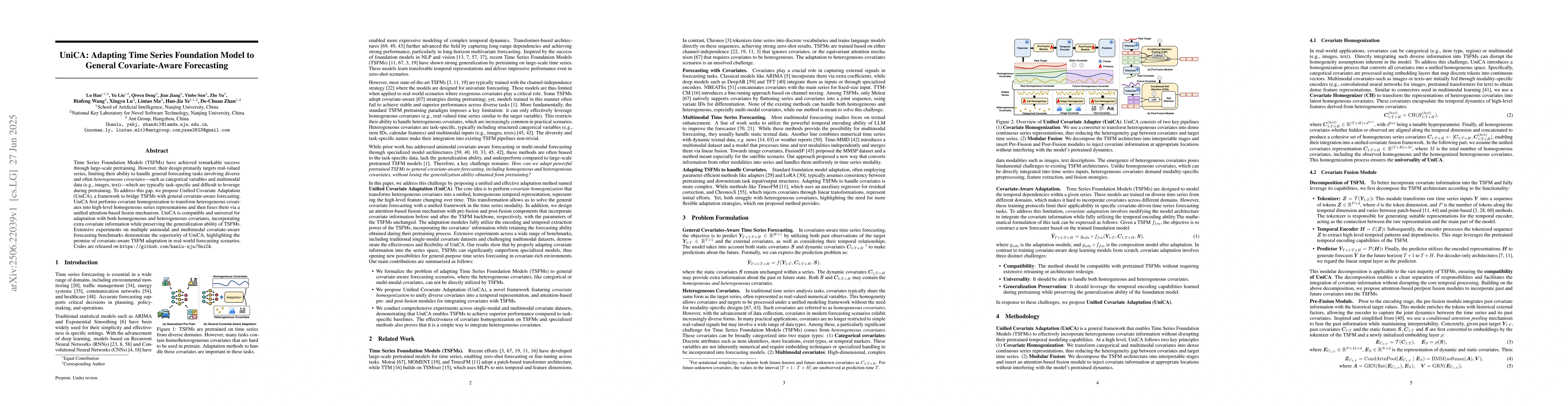 Time Series Foundation Models (TSFMs) have achieved remarkable success through large-scale pretraining. However, their design primarily targets real-valued series, limiting their ability to handle general forecasting tasks involving diverse and often heterogeneous covariates--such as categorical variables and multimodal data (e.g., images, text)--which are typically task-specific and difficult to leverage during pretraining. To address this gap, we propose Unified Covariate Adaptation (UniCA), a framework to bridge TSFMs with general covariate-aware forecasting. UniCA first performs covariate homogenization to transform heterogeneous covariates into high-level homogeneous series representations and then fuses them via a unified attention-based fusion mechanism. UniCA is compatible and universal for adaptation with both homogeneous and heterogeneous covariates, incorporating extra covariate information while preserving the generalization ability of TSFMs.Extensive experiments on multiple unimodal and multimodal covariate-aware forecasting benchmarks demonstrate the superiority of UniCA, highlighting the promise of covariate-aware TSFM adaptation in real-world forecasting scenarios. Codes are released on https://github.com/hanlu-nju/UniCA.