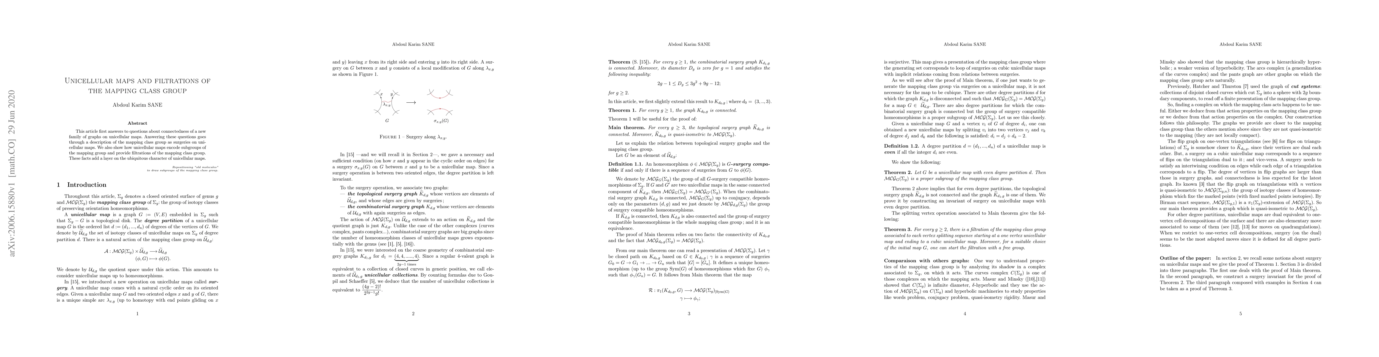 Researchers explored how unicellular maps relate to the mapping class group, showing that these maps encode subgroups of the group and provide a way to filter its structure.