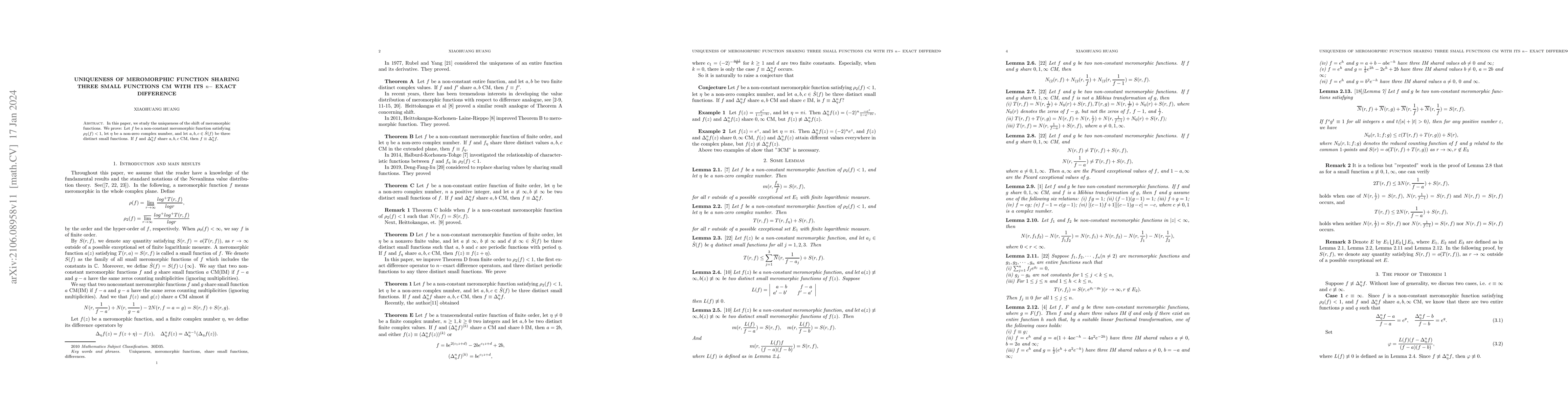 In this paper, we study the uniqueness of the shift of meromorphic functions. We prove: Let $f$ be a non-constant meromorphic function satisfying $\rho_{2}(f)<1$, let $\eta$ be a non-zero complex number, and let $a,b,c\in\hat{S}(f)$ be three distinct small functions. If $f$ and $\Delta^{n}_{\eta}f$ share $a,b,c$ CM, then $f\equiv \Delta^{n}_{\eta}f$.