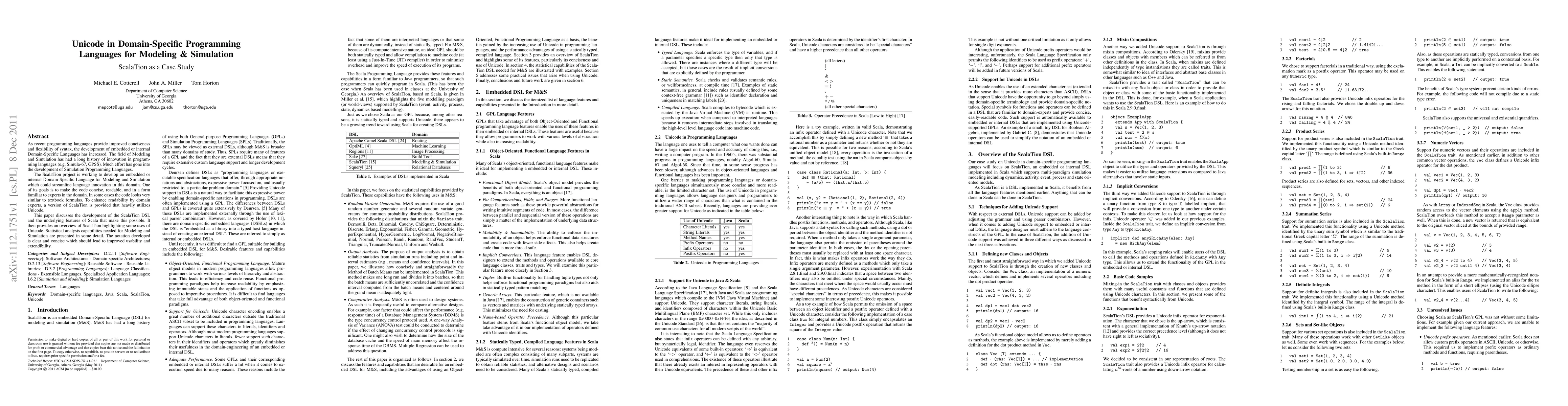 This paper explores the ScalaTion Domain-Specific Language for Modeling and Simulation, emphasizing its use of Unicode to enhance readability and familiarity for domain experts. It discusses ScalaTion's development, its statistical analysis capabilities, and how Unicode improves the language's conciseness and usability.