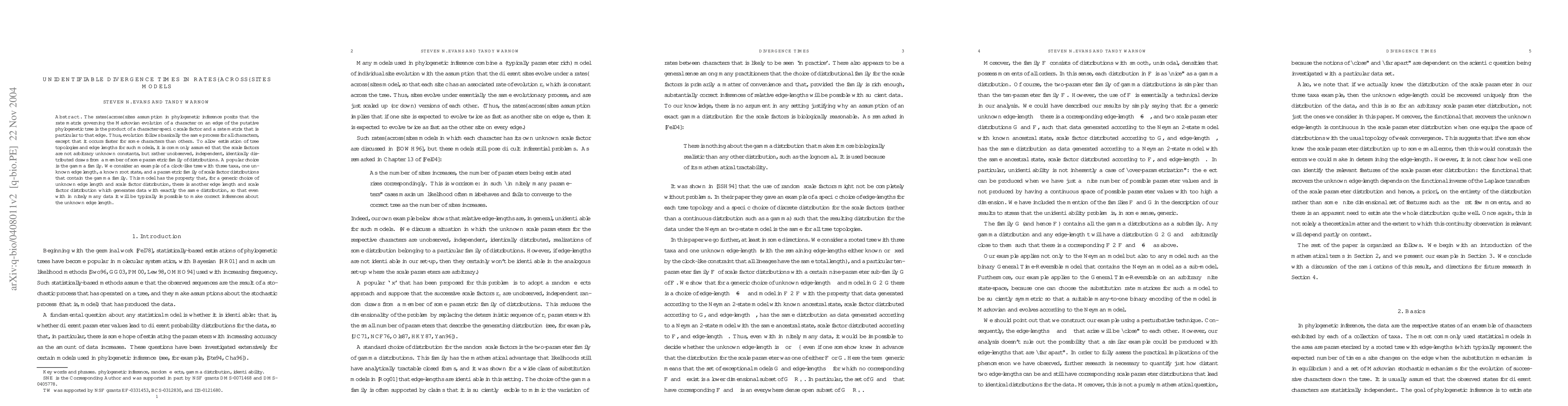 The rates-across-sites assumption in phylogenetic inference posits that the rate matrix governing the Markovian evolution of a character on an edge of the putative phylogenetic tree is the product of a character-specific scale factor and a rate matrix that is particular to that edge. Thus, evolution follows basically the same process for all characters, except that it occurs faster for some characters than others. To allow estimation of tree topologies and edge lengths for such models, it is commonly assumed that the scale factors are not arbitrary unknown constants, but rather unobserved, independent, identically distributed draws from a member of some parametric family of distributions. A popular choice is the gamma family. We consider an example of a clock-like tree with three taxa, one unknown edge length, and a parametric family of scale factor distributions that contain the gamma family. This model has the property that, for a generic choice of unknown edge length and scale factor distribution, there is another edge length and scale factor distribution which generates data with exactly the same distribution, so that even with infinitely many data it will be typically impossible to make correct inferences about the unknown edge length.
