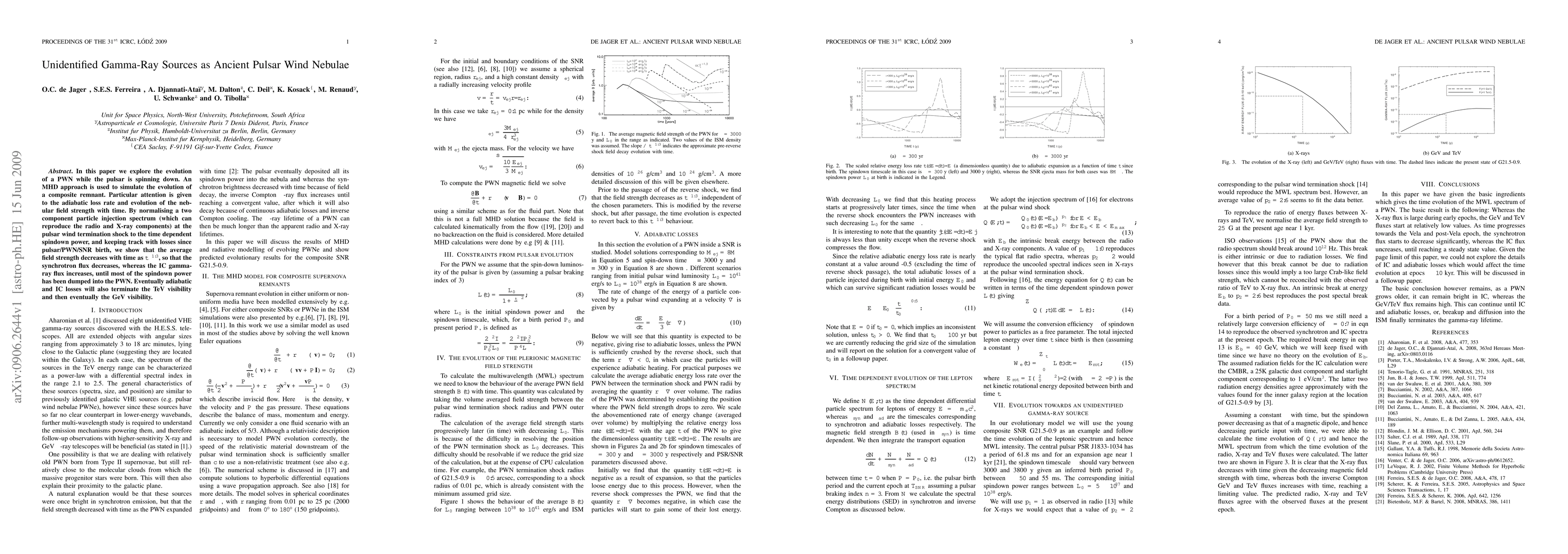 In this paper we explore the evolution of a PWN while the pulsar is spinning down. An MHD approach is used to simulate the evolution of a composite remnant. Particular attention is given to the adiabatic loss rate and evolution of the nebular field strength with time. By normalising a two component particle injection spectrum (which can reproduce the radio and X-ray components) at the pulsar wind termination shock to the time dependent spindown power, and keeping track with losses since pulsar/PWN/SNR birth, we show that the average field strength decreases with time as $t^{-1.3}$, so that the synchrotron flux decreases, whereas the IC gamma-ray flux increases, until most of the spindown power has been dumped into the PWN. Eventually adiabatic and IC losses will also terminate the TeV visibility and then eventually the GeV visibility.