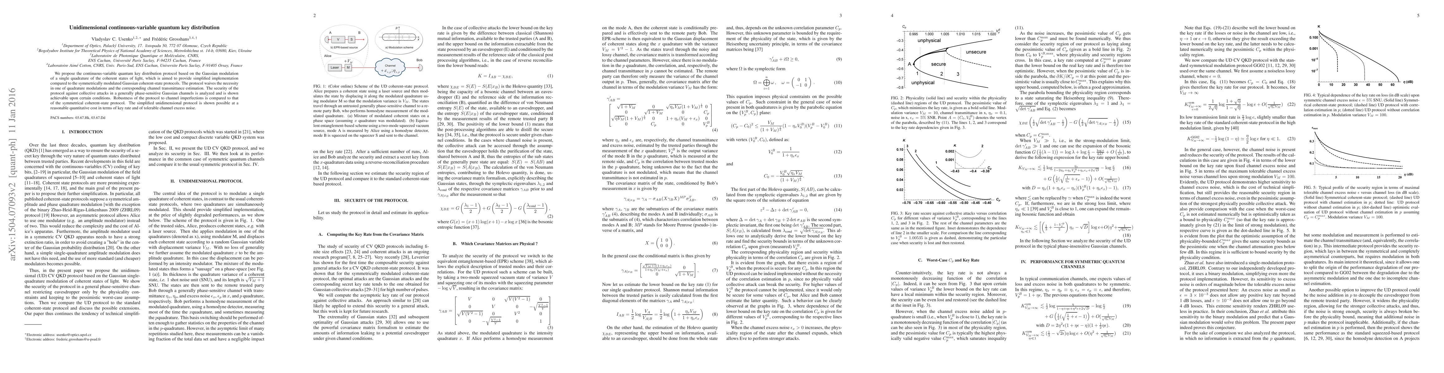 This paper proposes a simplified unidimensional continuous-variable quantum key distribution protocol based on Gaussian modulation of a single light quadrature, eliminating the need for phase quadrature modulation and channel transmittance estimation. The protocol's security against collective attacks is analyzed under certain conditions, and its robustness is compared to symmetrical coherent-state protocols, showing acceptable performance in terms of key rate and tolerable noise.