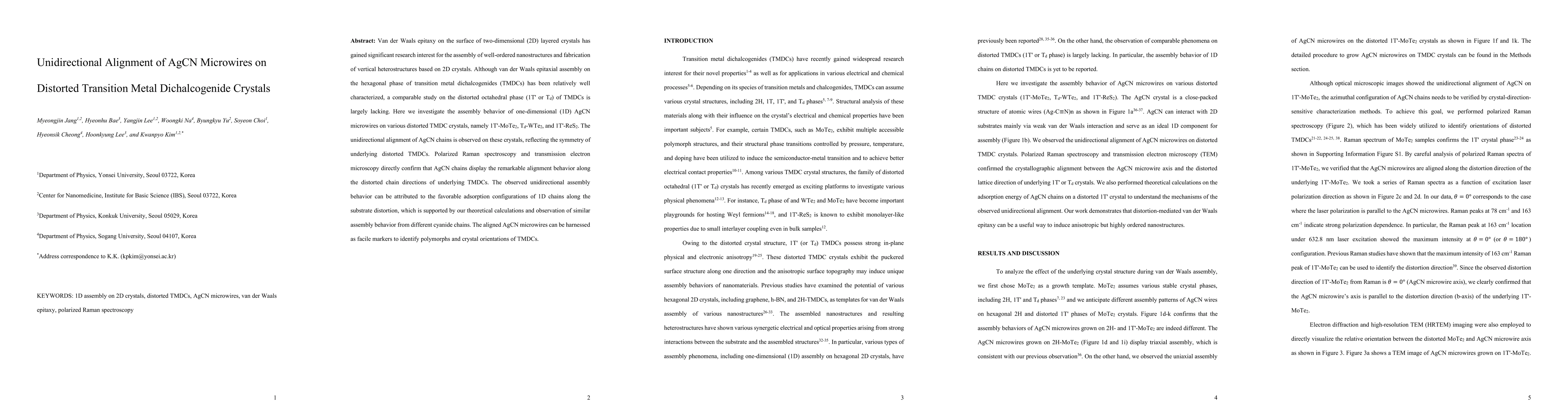 Researchers observed unidirectional alignment of AgCN microwires on distorted TMDC crystals, which can help identify polymorphs and crystal orientations.