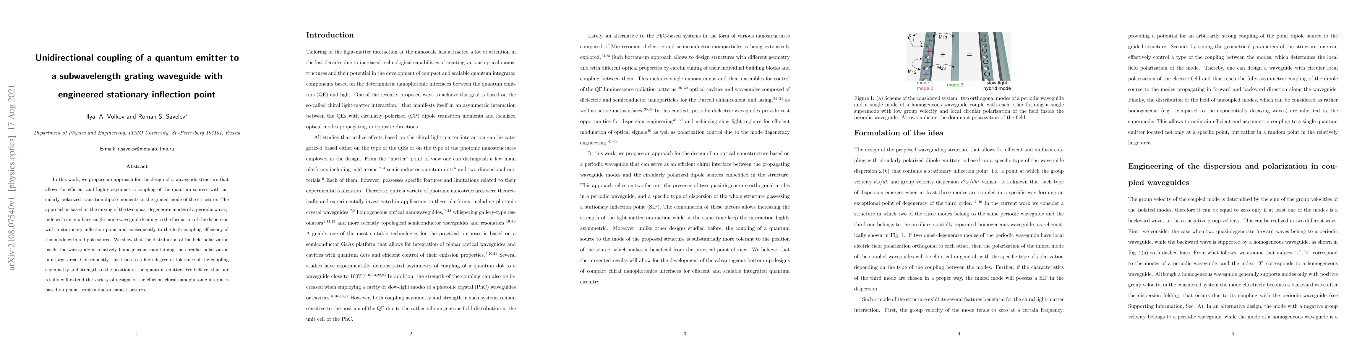 In this work, we propose an approach for the design of a waveguide structure that allows for efficient and highly asymmetric coupling of the quantum sources with circularly polarized transition dipole moments to the guided mode of the structure. The approach is based on the mixing of the two quasi-degenerate modes of a periodic waveguide with an auxiliary single-mode waveguide leading to the formation of the dispersion with a stationary inflection point and consequently to the high coupling efficiency of this mode with a dipole source. We show that the distribution of the field polarization inside the waveguide is relatively homogeneous maintaining the circular polarization in a large area. Consequently, this leads to a high degree of tolerance of the coupling asymmetry and strength to the position of the quantum emitter. We believe, that our results will extend the variety of designs of the efficient chiral nanophotonic interfaces based on planar semiconductor nanostructures.