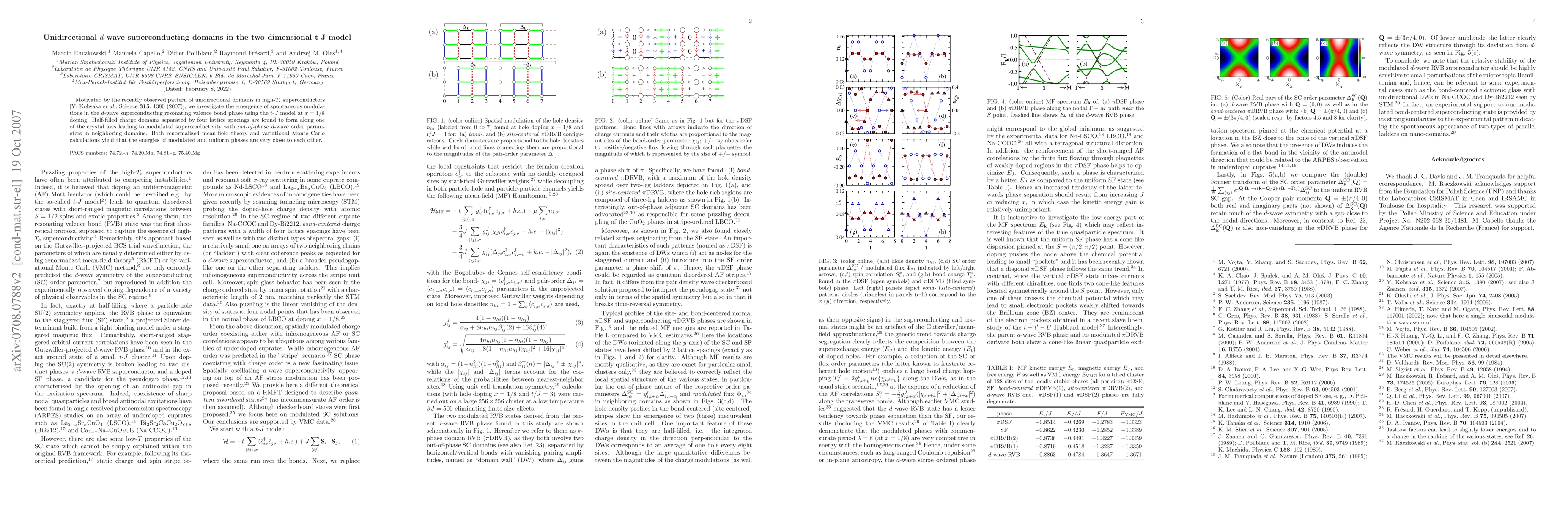 Researchers found unidirectional d-wave superconducting domains in a 2D material model, with neighboring domains having out-of-phase order parameters. The energies of these modulated phases were found to be very close to uniform phases.