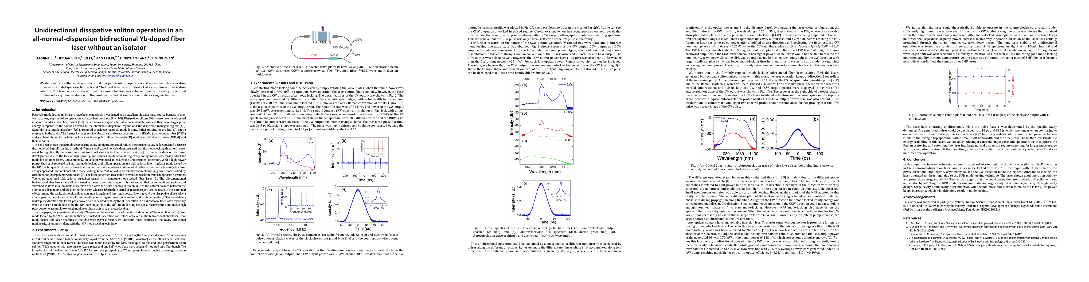This paper demonstrates self-started unidirectional dissipative soliton operation in a bidirectional Yb-doped fiber laser without an isolator, utilizing cavity directional nonlinearity asymmetry and nonlinear polarization rotation mode locking. The laser achieves noise-like pulse operation in all-normal-dispersion conditions.