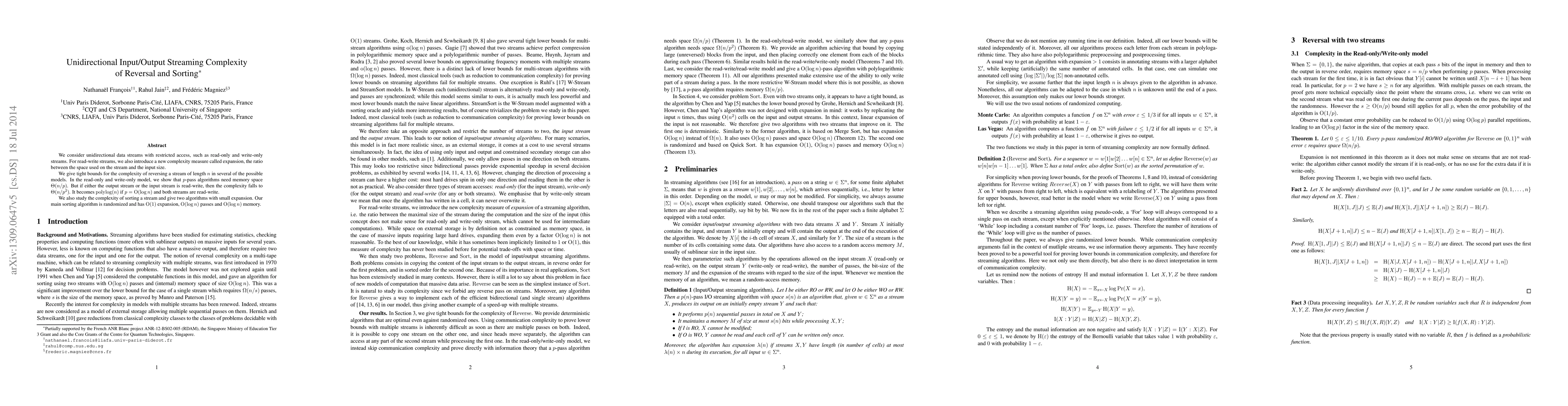 We consider unidirectional data streams with restricted access, such as read-only and write-only streams. For read-write streams, we also introduce a new complexity measure called expansion, the ratio between the space used on the stream and the input size. We give tight bounds for the complexity of reversing a stream of length $n$ in several of the possible models. In the read-only and write-only model, we show that $p$-pass algorithms need memory space ${\Theta}(n/p)$. But if either the output stream or the input stream is read-write, then the complexity falls to ${\Theta}(n/p^2)$. It becomes $polylog(n)$ if $p = O(log n)$ and both streams are read-write. We also study the complexity of sorting a stream and give two algorithms with small expansion. Our main sorting algorithm is randomized and has $O(1)$ expansion, $O(log n)$ passes and $O(log n)$ memory.