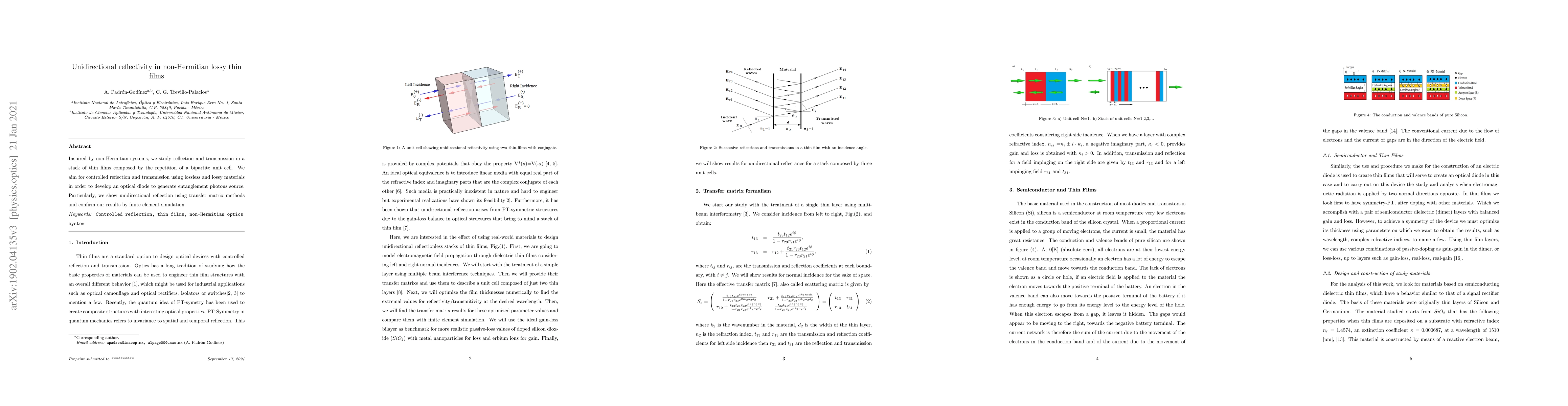 Researchers created a system of thin films with controlled reflection and transmission to generate entanglement photons, showing unidirectional reflection in lossy materials.