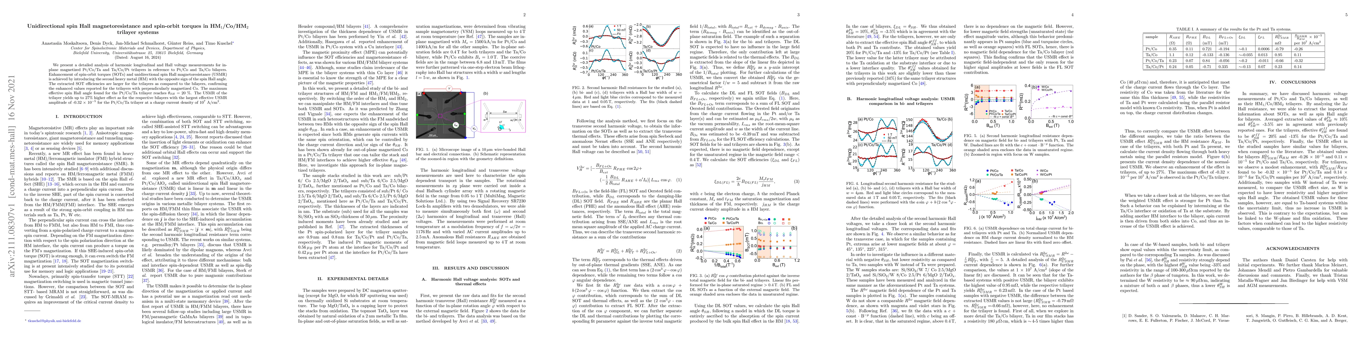 This paper investigates the enhancement of spin-orbit torques and unidirectional spin Hall magnetoresistance in Pt/Co/Ta and Ta/Co/Pt trilayer systems compared to Pt/Co and Ta/Co bilayers, finding significant improvements in both effects due to the introduction of a second heavy metal. The Pt/Co/Ta trilayer exhibits a maximum effective spin Hall angle of 20% and a 27% higher USMR effect.