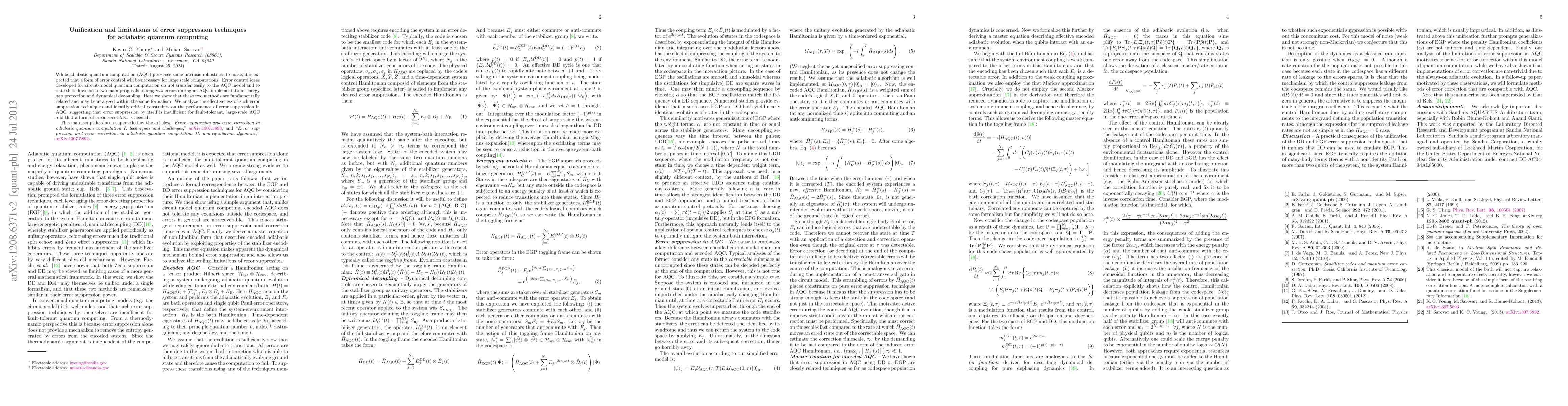 This paper unifies two main error suppression techniques for adiabatic quantum computing (AQC) and identifies their limitations, concluding that while error suppression is necessary, it is insufficient alone for fault-tolerant, large-scale AQC, and that error correction is also required. The work has been superseded by more recent articles that further explore these techniques and challenges.