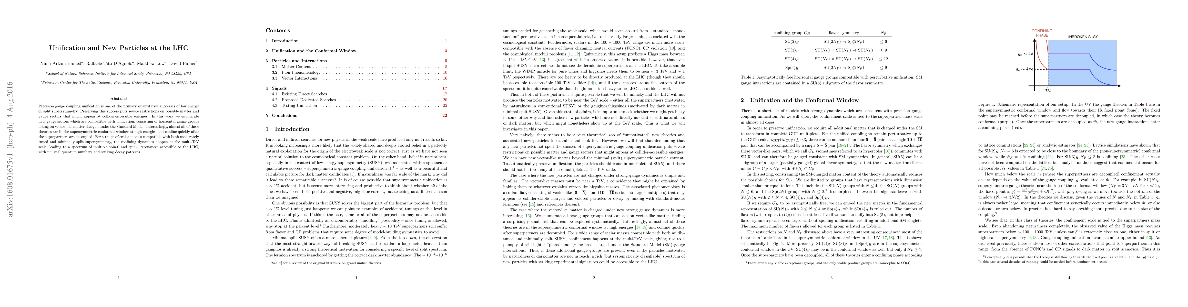 Precision gauge coupling unification is one of the primary quantitative successes of low energy or split supersymmetry. Preserving this success puts severe restrictions on possible matter and gauge sectors that might appear at collider-accessible energies. In this work we enumerate new gauge sectors which are compatible with unification, consisting of horizontal gauge groups acting on vector-like matter charged under the Standard Model. Interestingly, almost all of these theories are in the supersymmetric conformal window at high energies and confine quickly after the superpartners are decoupled. For a range of scalar masses compatible with both moderately tuned and minimally split supersymmetry, the confining dynamics happen at the multi-TeV scale, leading to a spectrum of multiple spin-0 and spin-1 resonances accessible to the LHC, with unusual quantum numbers and striking decay patterns.