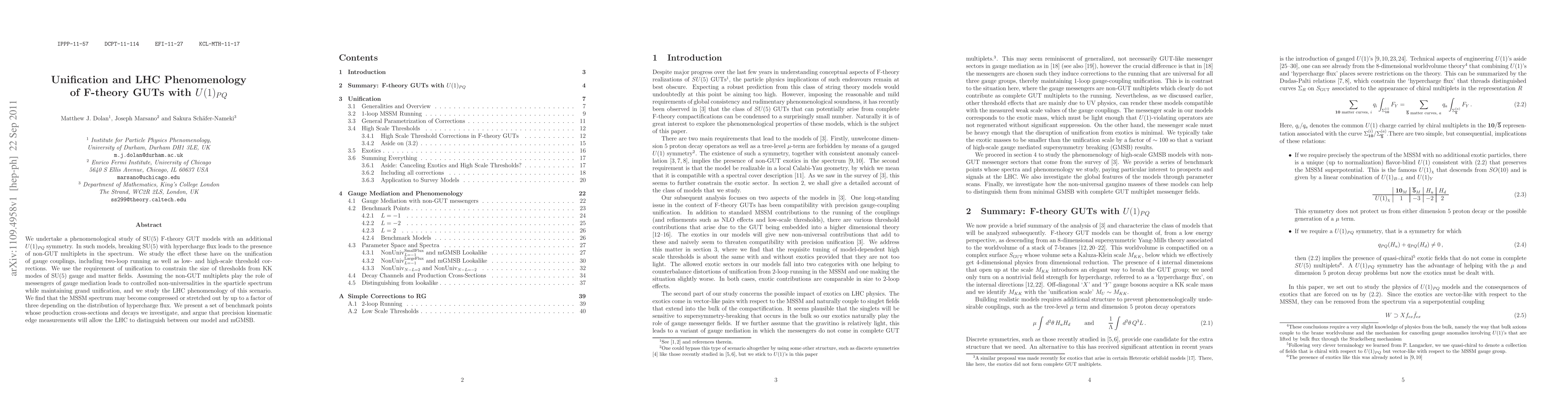 We undertake a phenomenological study of SU(5) F-theory GUT models with an additional U(1)_{PQ} symmetry. In such models, breaking SU(5) with hypercharge flux leads to the presence of non-GUT multiplets in the spectrum. We study the effect these have on the unification of gauge couplings, including two-loop running as well as low- and high-scale threshold corrections. We use the requirement of unification to constrain the size of thresholds from KK modes of SU(5) gauge and matter fields. Assuming the non-GUT multiplets play the role of messengers of gauge mediation leads to controlled non-universalities in the sparticle spectrum while maintaining grand unification, and we study the LHC phenomenology of this scenario. We find that the MSSM spectrum may become compressed or stretched out {by up to a factor of three} depending on the distribution of hypercharge flux. We present a set of benchmark points whose production cross-sections and decays we investigate, and argue that precision kinematic edge measurements will allow the LHC to distinguish between our model and mGMSB.