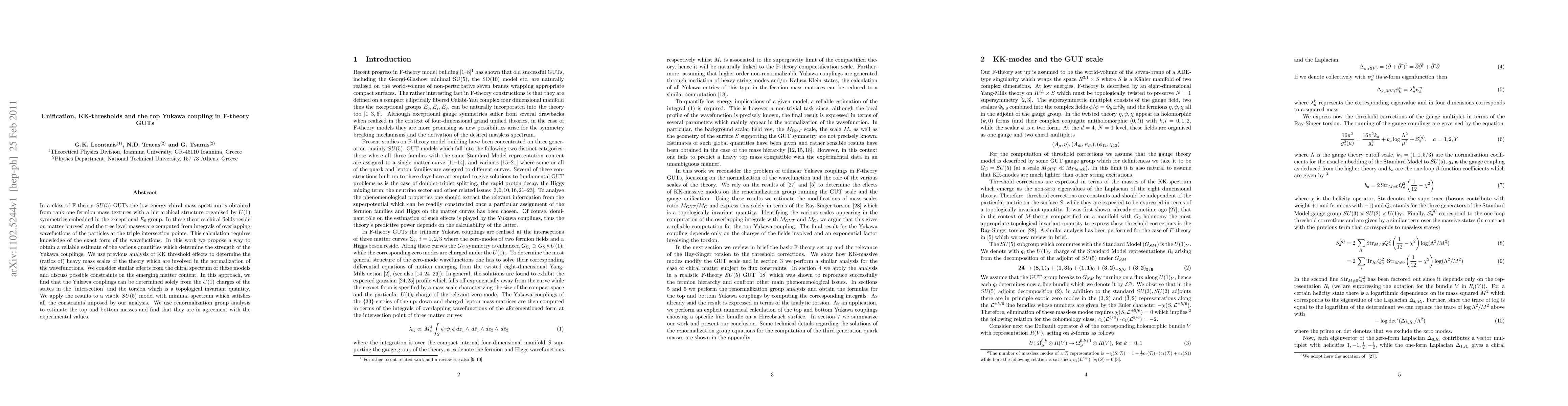 This paper explores F-theory SU(5) Grand Unified Theories (GUTs) where the chiral mass spectrum is derived from rank one fermion textures and U(1) symmetries. It proposes a method to estimate Yukawa couplings using KK threshold effects and U(1) charges, demonstrating agreement with experimental top and bottom masses in a viable SU(5) model.