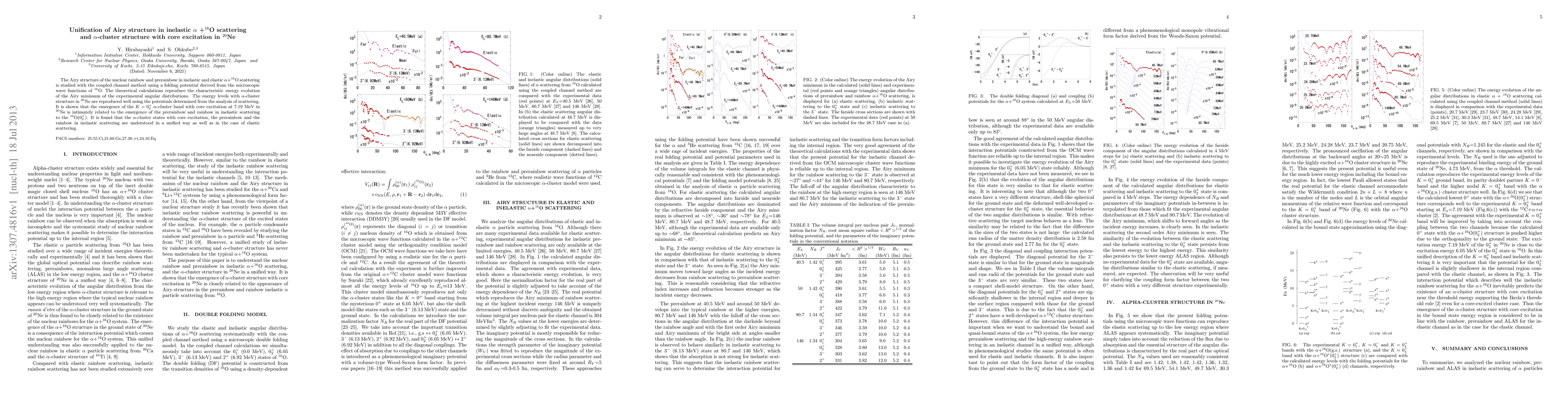 The paper presents a novel approach to unifying the description of $\alpha$-cluster structures with core excitation and nuclear rainbow/prerainbow phenomena in both elastic and inelastic scattering using a folding potential derived from microscopic wave functions.