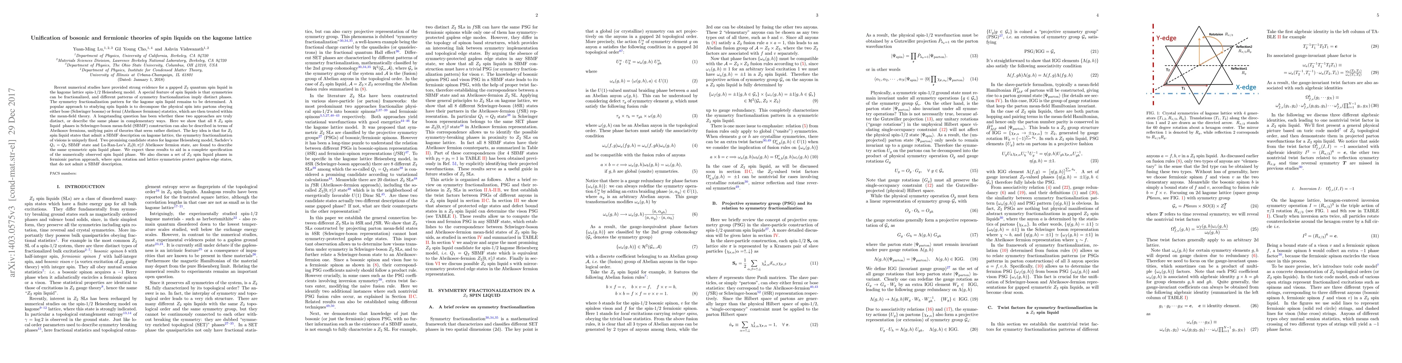 This paper demonstrates the unification of bosonic and fermionic theories for $Z_2$ spin liquids on the kagome lattice, showing that all 8 phases in the Schwinger-boson mean-field construction can be equivalently described using Abrikosov fermions. The study highlights that specific $Z_2$ spin liquid states, such as Sachdev's and Lu-Ran-Lee's states, describe the same phase, thus bridging two seemingly distinct approaches.