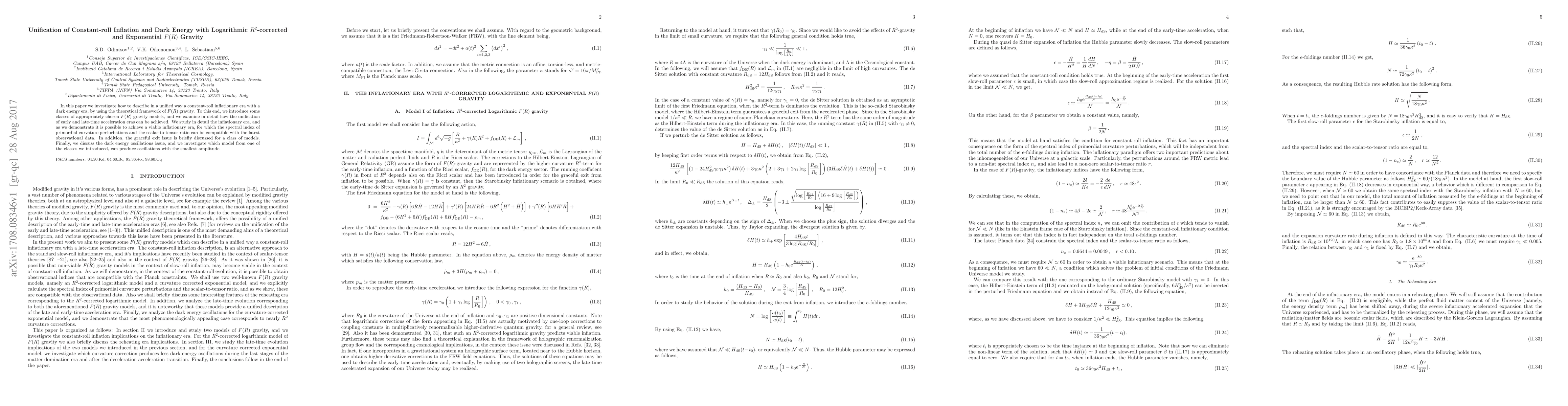 This paper proposes a unified framework for constant-roll inflation and dark energy using logarithmic $R^2$-corrected and exponential $F(R)$ gravity, aiming to reconcile early and late-time acceleration eras.
