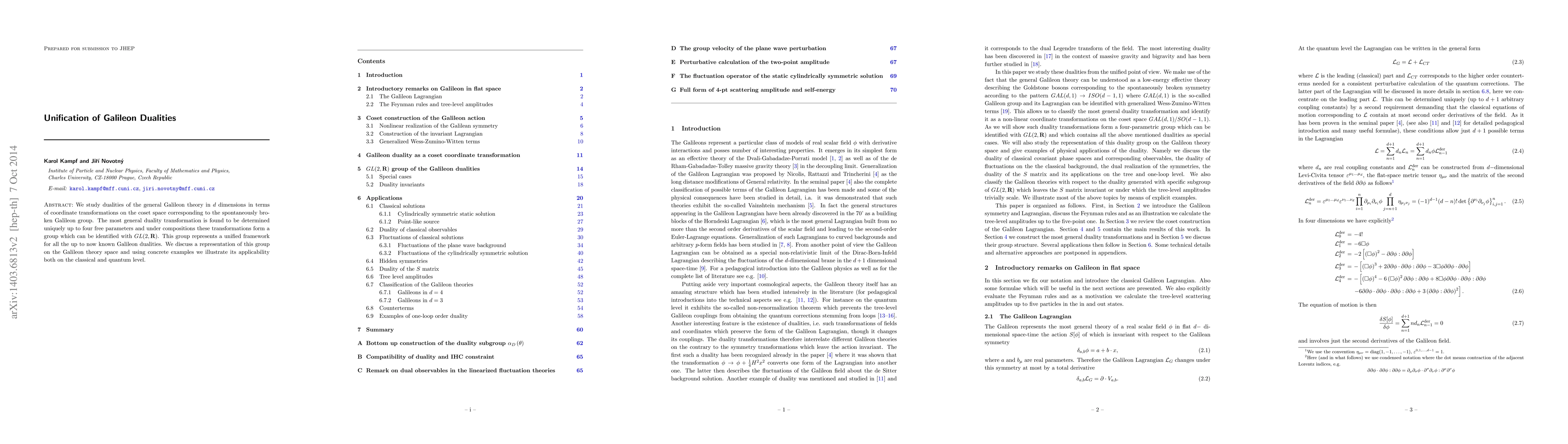 This paper identifies a unified framework for Galileon dualities in d dimensions, showing that the most general duality transformation forms a group isomorphic to GL(2,R) and represents all known dualities. It discusses the group's representation on the Galileon theory space and demonstrates its applicability in both classical and quantum contexts.