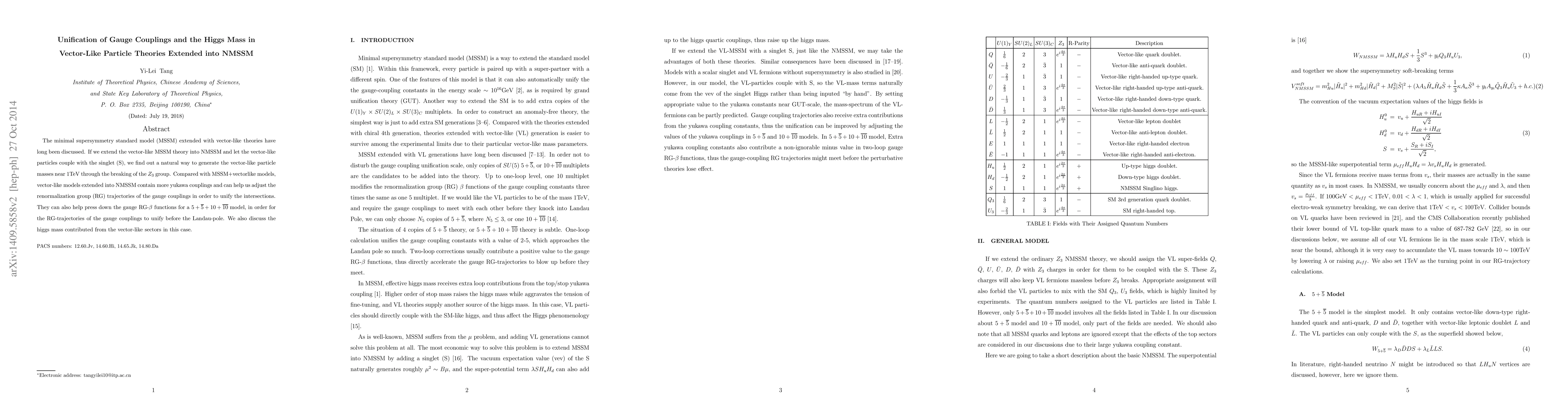 This paper explores how extending the MSSM with vector-like particles into NMSSM allows for natural generation of vector-like particle masses near 1 TeV and facilitates unification of gauge couplings through adjustments in renormalization group trajectories. It also addresses the impact on the Higgs mass from the vector-like sectors.