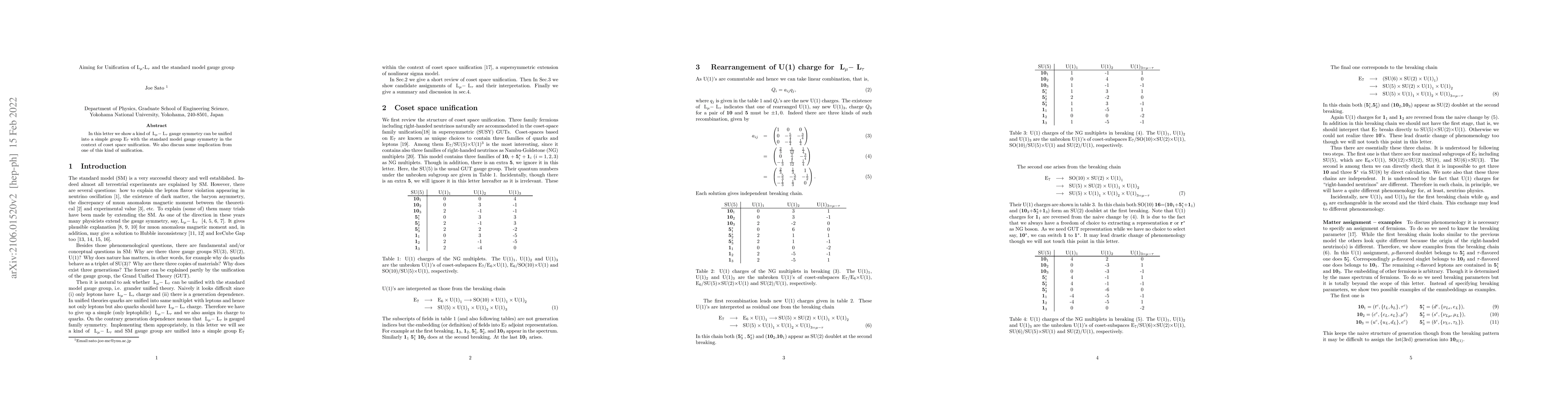 This paper proposes unifying a specific gauge symmetry, L$_\mu$-L$_\tau$, with the Standard Model gauge group within a coset space framework, and explores implications arising from such a unification.
