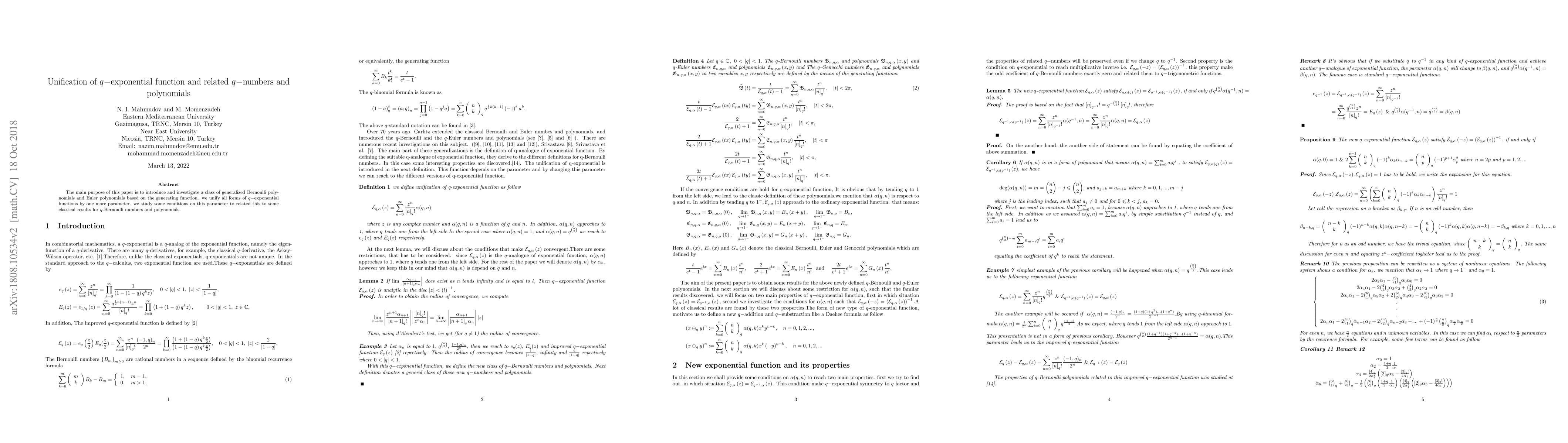 This paper introduces generalized Bernoulli and Euler polynomials using a generating function and unifies various forms of q-exponential functions with an additional parameter, linking these to classical q-Bernoulli numbers and polynomials.