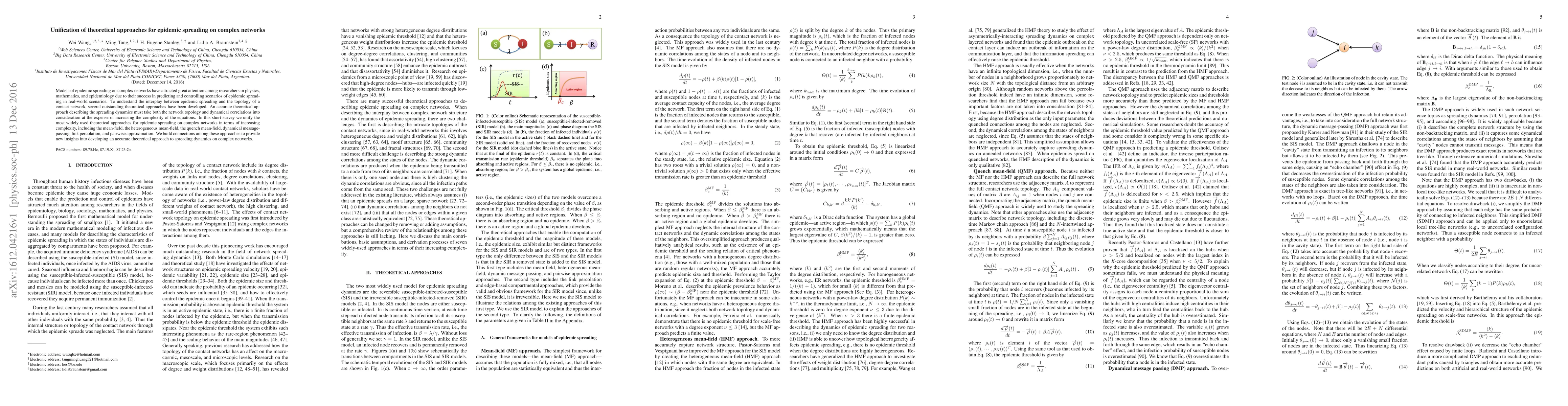 Models of epidemic spreading on complex networks have attracted great attention among researchers in physics, mathematics, and epidemiology due to their success in predicting and controlling scenarios of epidemic spreading in real-world scenarios. To understand the interplay between epidemic spreading and the topology of a contact network, several outstanding theoretical approaches have been developed. An accurate theoretical approach describing the spreading dynamics must take both the network topology and dynamical correlations into consideration at the expense of increasing the complexity of the equations. In this short survey we unify the most widely used theoretical approaches for epidemic spreading on complex networks in terms of increasing complexity, including the mean-field, the heterogeneous mean-field, the quench mean-field, dynamical message-passing, link percolation, and pairwise approximation. We build connections among these approaches to provide new insights into developing an accurate theoretical approach to spreading dynamics on complex networks.